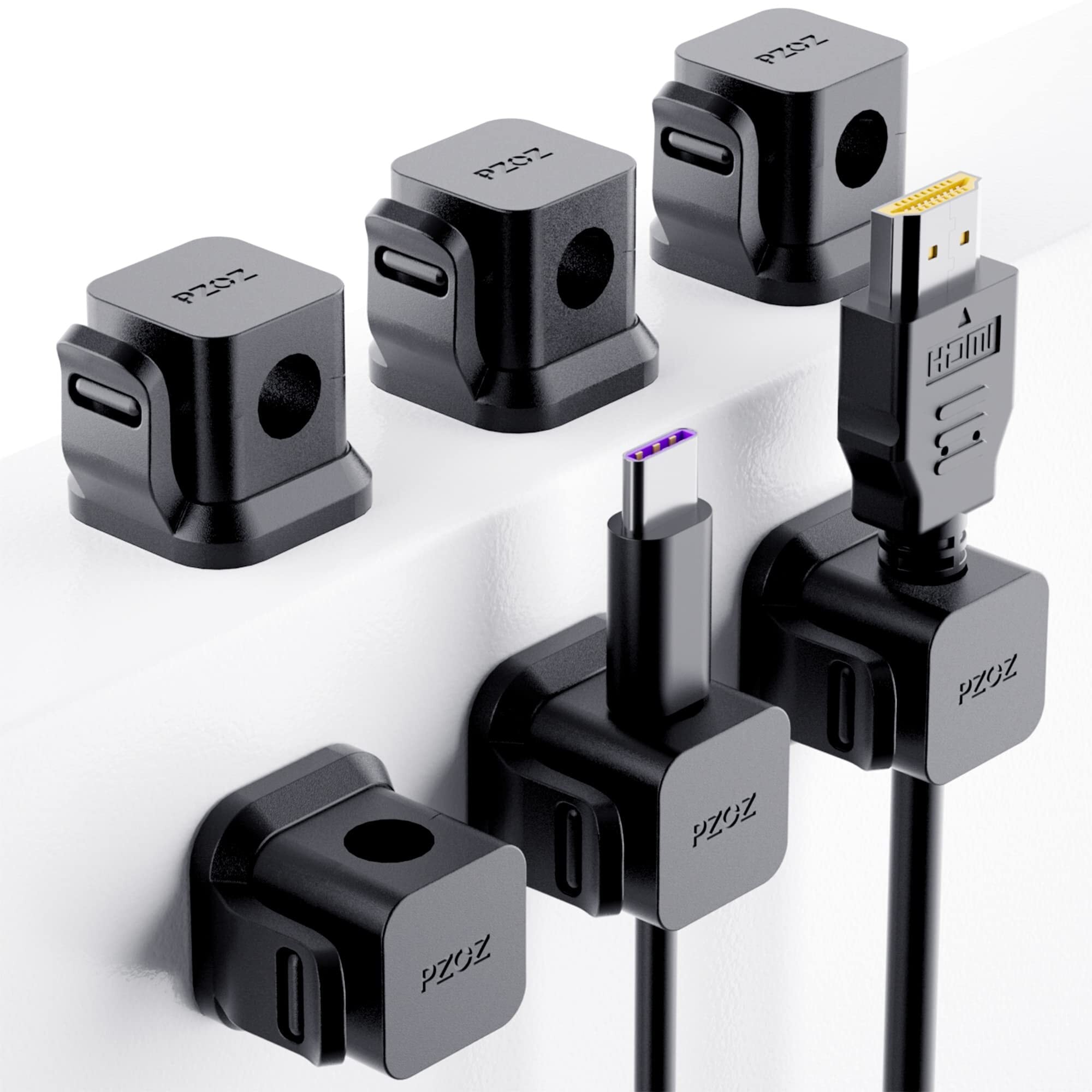 PZOZ 6個入り PC製 ケーブルホルダー 落下防止 ケーブルクリップ 充電ケーブル 単穴 固定 USB コードクリップ 配線 固定 収納用 貼り付けタイプ (ブラック)