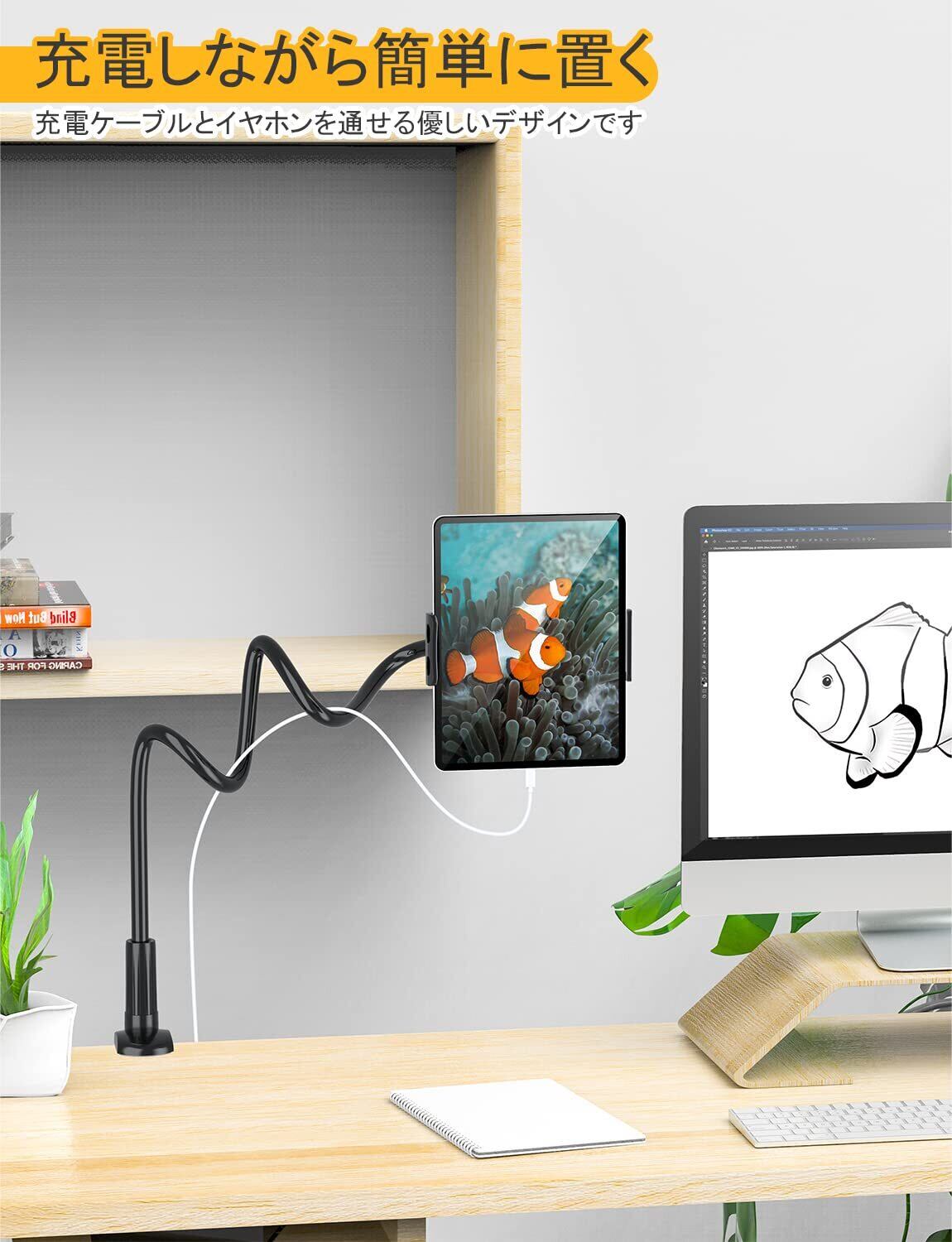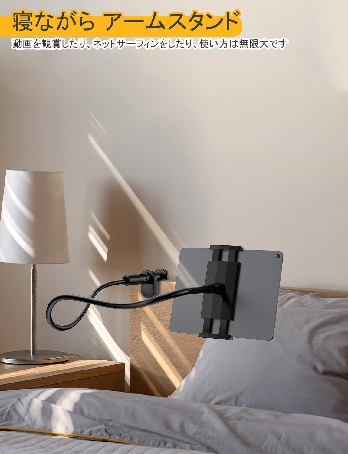 【76CM 初登場】 タブレット&スマホ 両用 スタンド 寝ながらタブレットスタンド 全機種対応 iPhone&iPad スタンド スマホスタンド タブレットスタンド アームスタンド 寝ながらスマホスタンド 携帯 スマホアーム 360自由回転 土台強化 安定性 フレキシブルアーム付き 柔軟自由調節 幅広い互換性 4-10.6インチ 手帳型ケースにも対応可能 黒