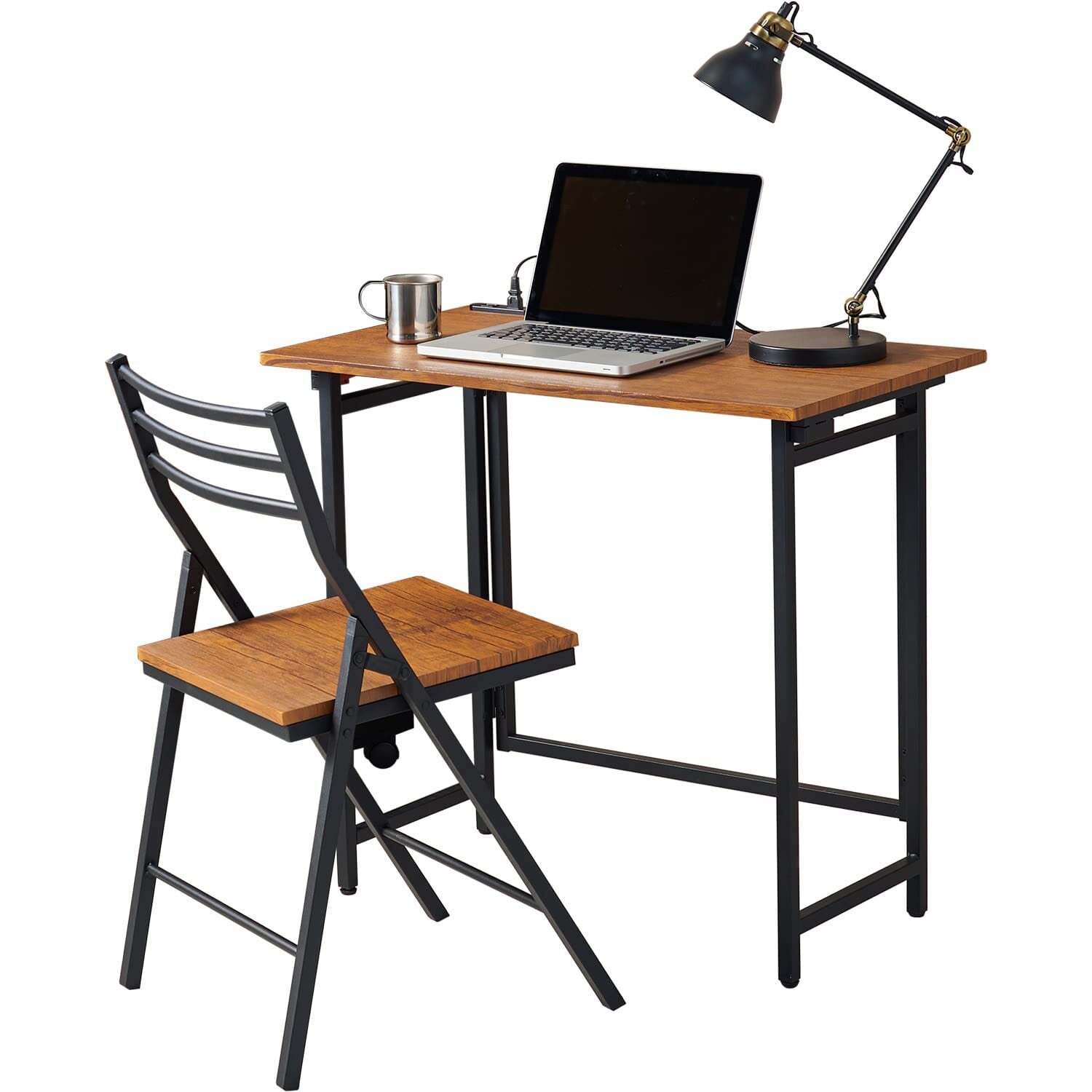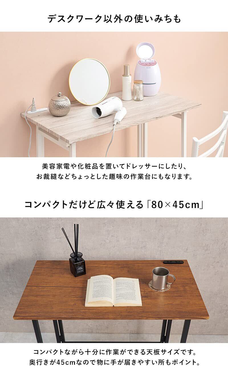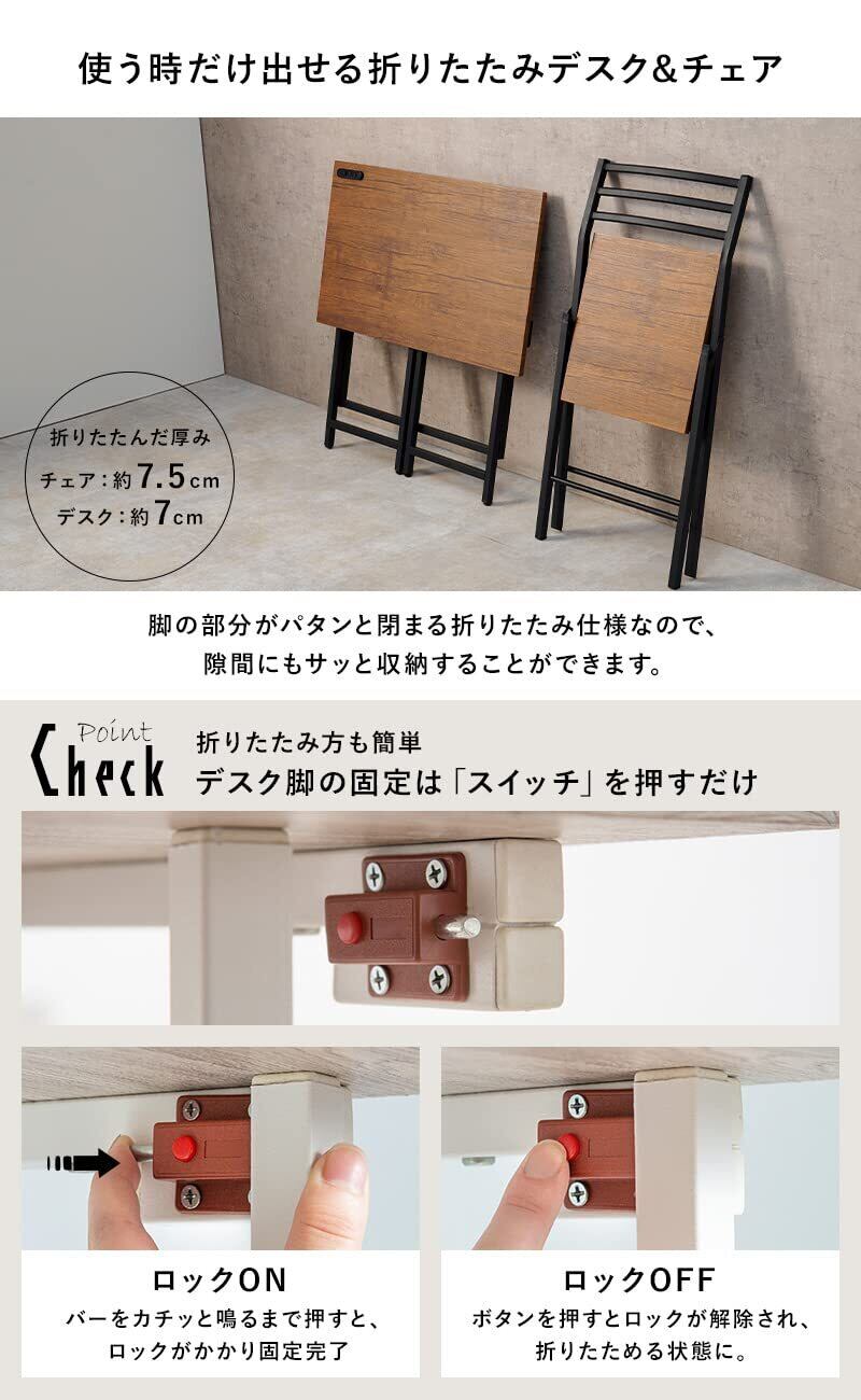萩原 デスク セット チェア付 デスク イス 折りたたみ【セット買い】 コンセント付き 幅80 奥行45 高さ72 勉強机 テレワーク ブラウン LDC-4777BR