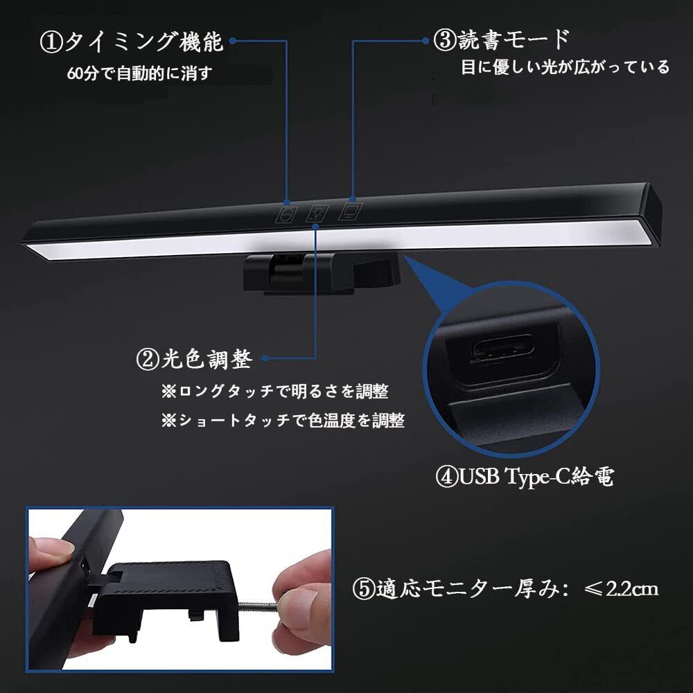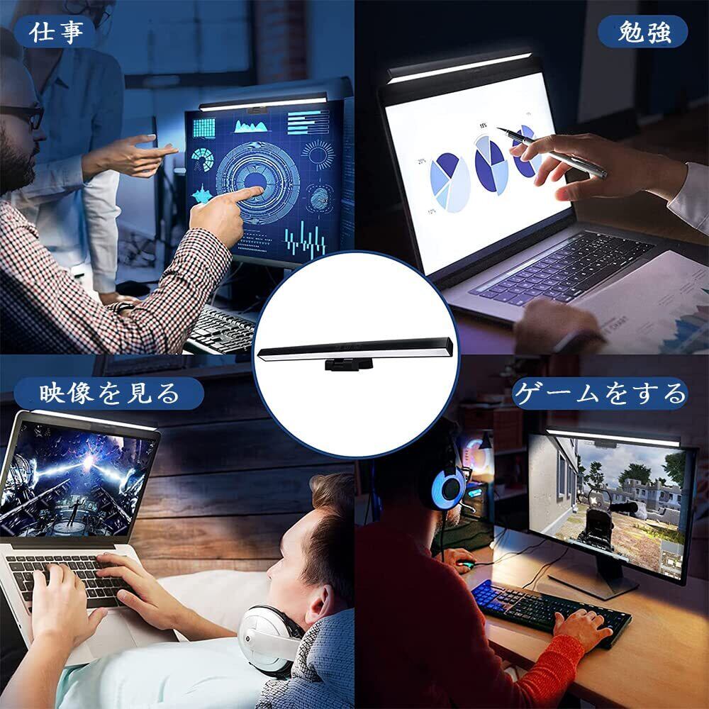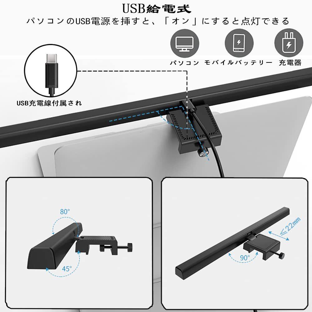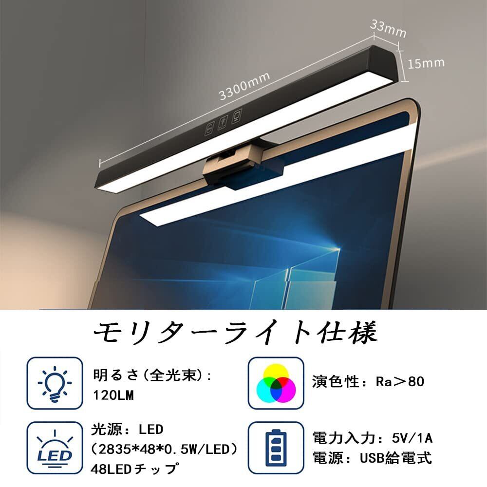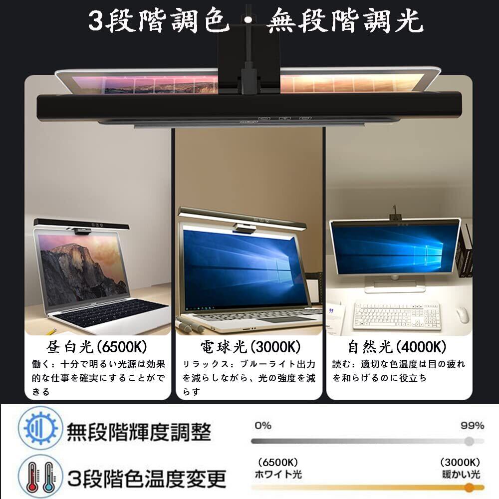 モニターライト 33cm USBライト デスクライト モニター掛け式ライト 非対称配光 タッチセンサー調色調光 スクリーンライト PC作業 読書 仕事 寝室 卓上に対応 USB給電 ホワイト