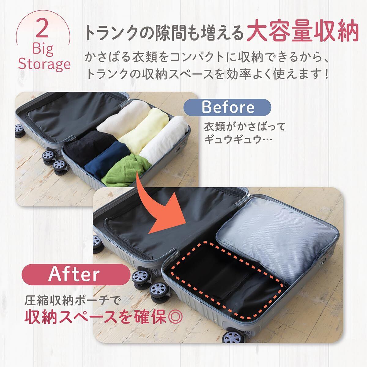 ICHIFUJI 旅行用圧縮袋 トラベルポーチ 圧縮バッグ 収納ポーチ ファスナー 出張 旅行 便利グッズ 圧縮で衣類スペース約50%節約 (Lサイズ, ジェットブラック)