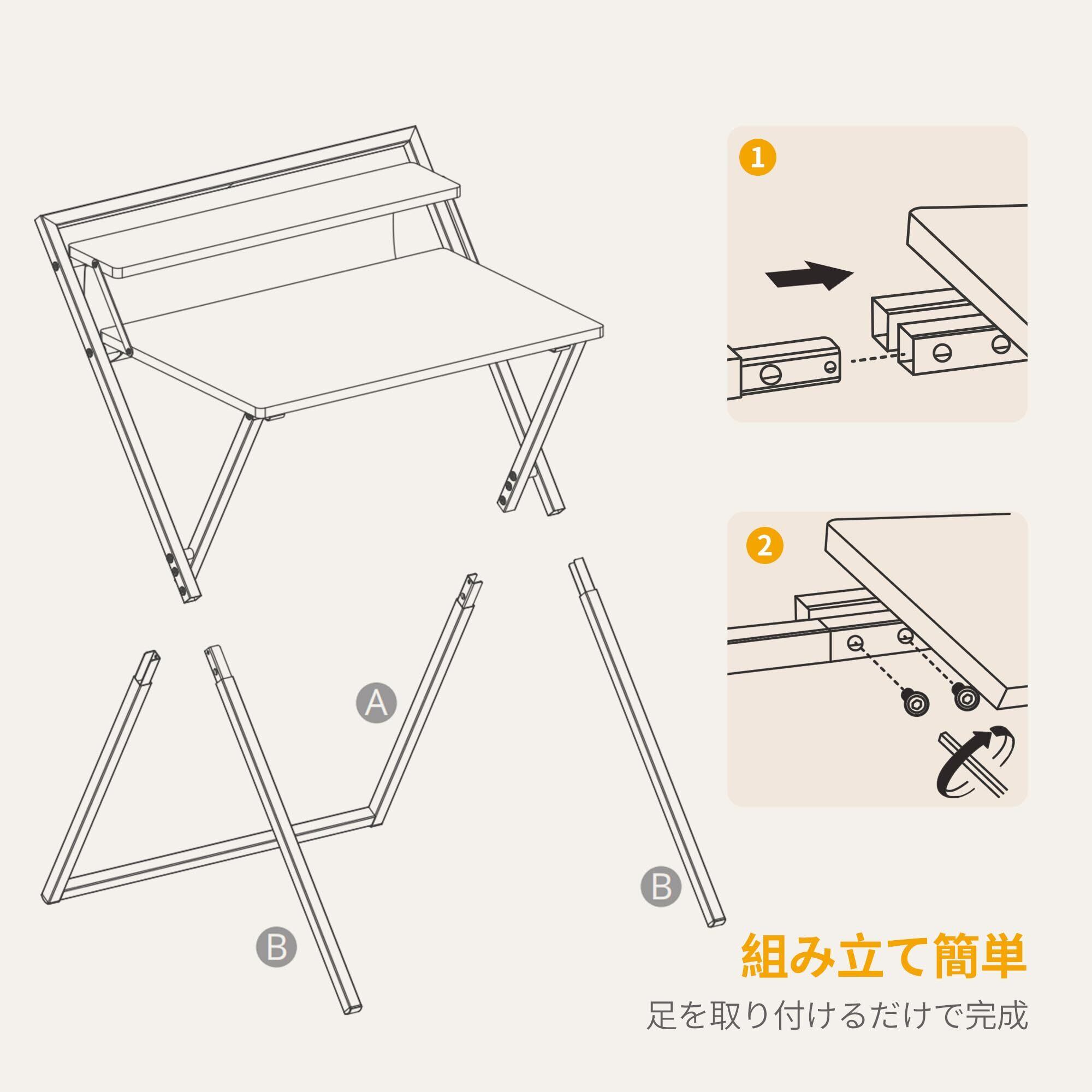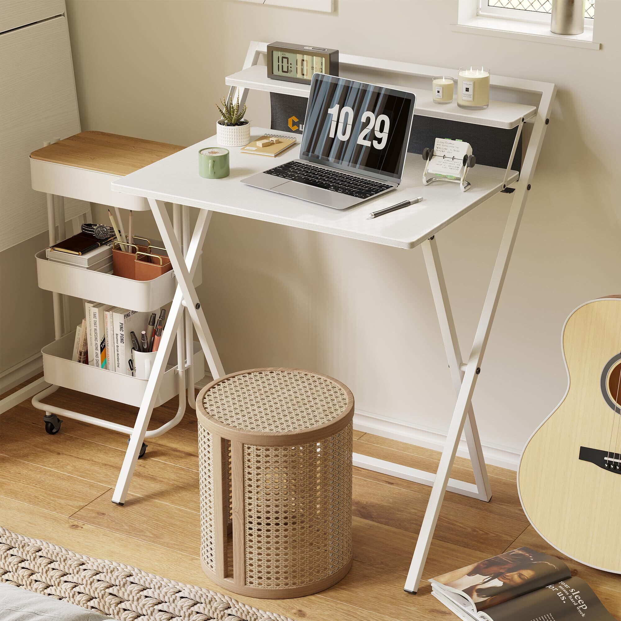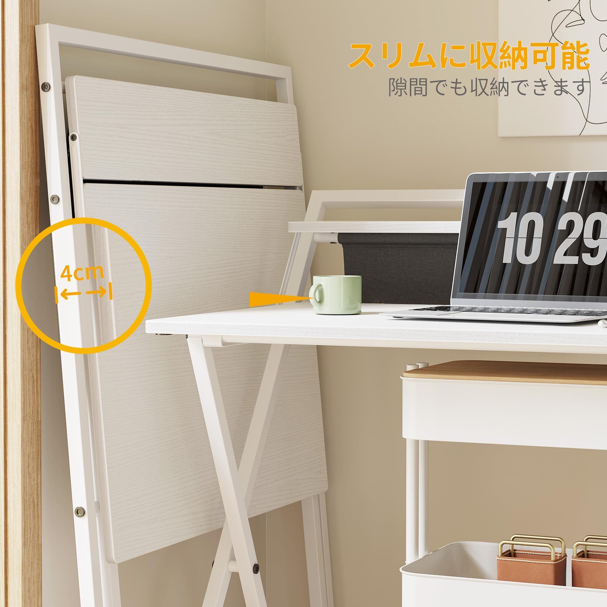 【特価セール】CubiCubi 折りたたみデスク 組み立て5分 モニター台付き 折りたたみ机 勉強机 一人暮らし 収納便利 落ち防止袋付き 幅60cm*奥行き40cm ホワイト