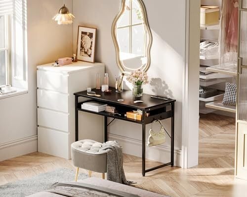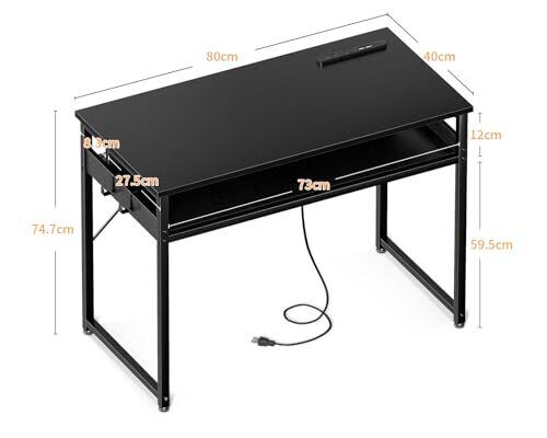 ODK 机 pcデスク パソコンデスク 幅80cm ゲーミングデスク 収納付き コンセント付き 勉強机 computer desk 桌子 ワークデスク 电脑桌 フック2個付き コンパクト テレワーク用 省スペース 組立簡単 黒い