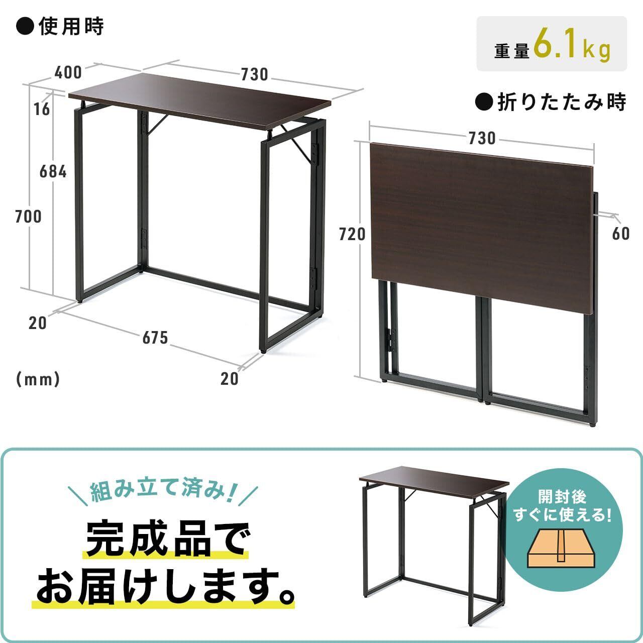 サンワダイレクト 折りたたみデスク コンパクト 幅73×奥行40×高さ70cm 耐荷重20㎏ パソコンデスク 折り畳みテーブル ブラック 100-DESKH075BK