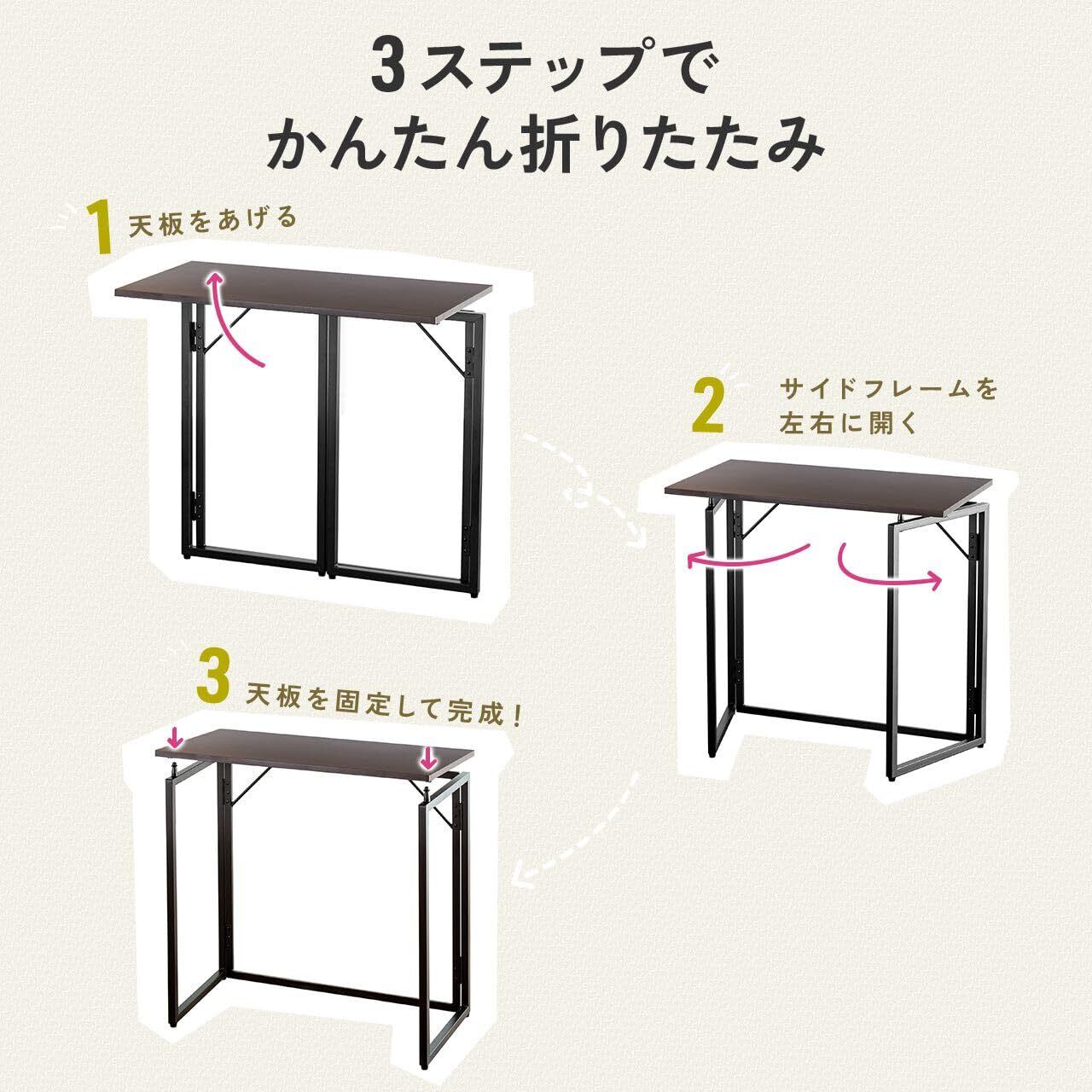 使う時だけパッと開いて、設置も片付けも簡単にできる 折り畳みデスク です。