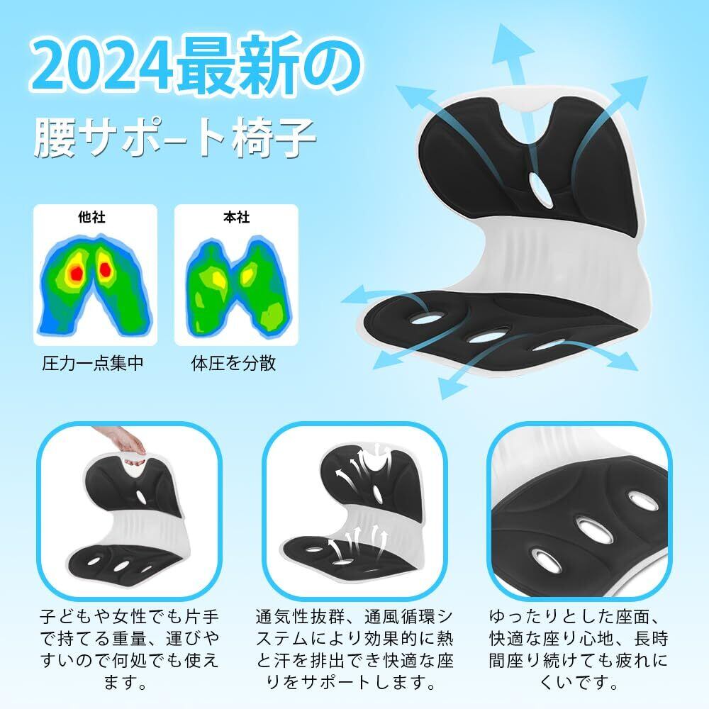 【人気商品】姿勢矯正 椅子 ランバーサポート 背筋 クッション猫背改善 腰が痛くならない 座椅子 骨盤サポート 軽量 持ち運び簡単 オフィス テレワーク 女性 男性 学生 ギフト(ブラック)