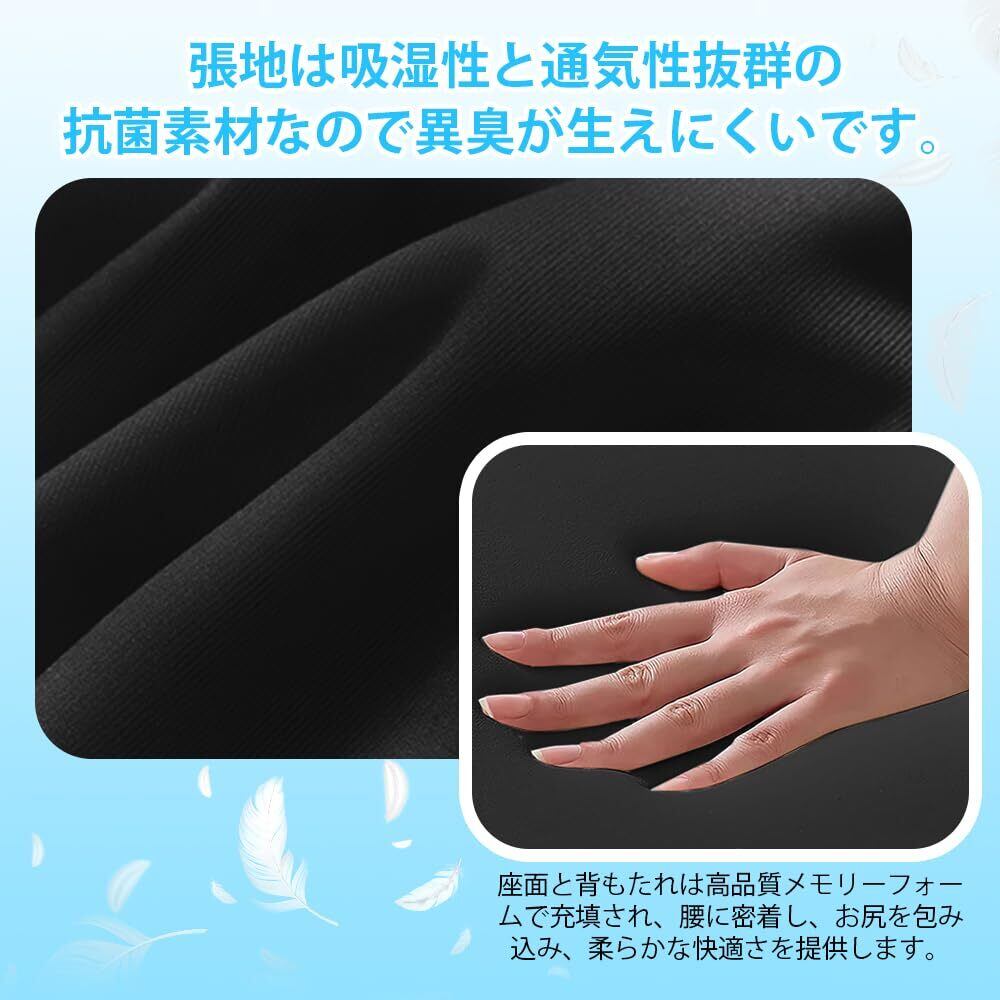 【通気排湿】クッションと背もたれに複数の通気孔デザイン、汗や体熱を有効的に排出することができ、過熱の心配がなく、座った時に蒸し暑いを感じさせません。 また、防水生地ので、汗をかいても安心です。