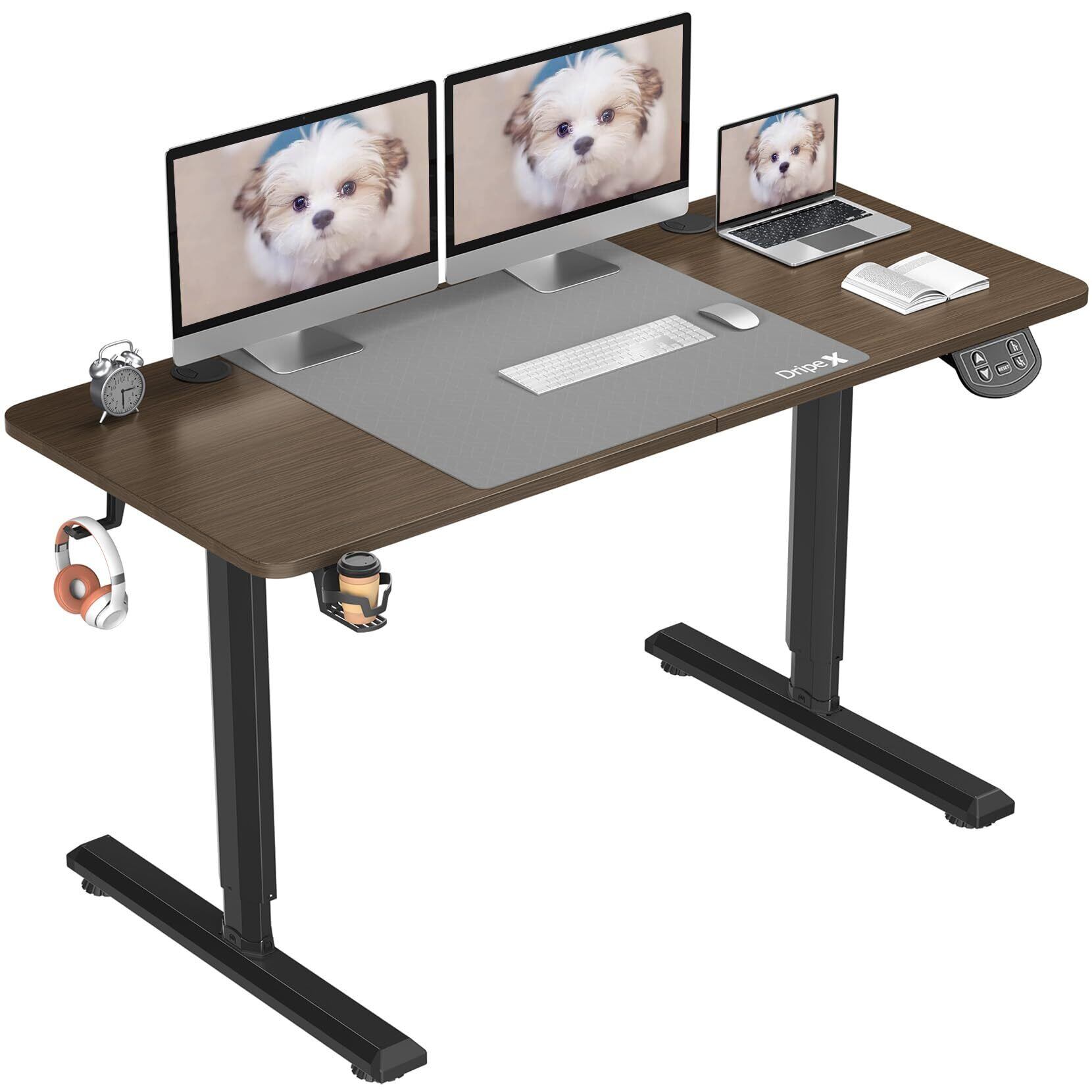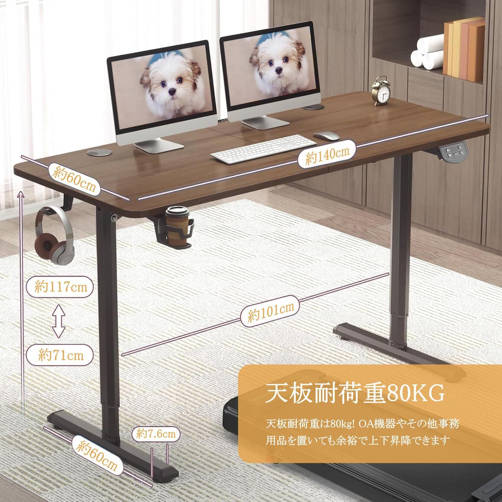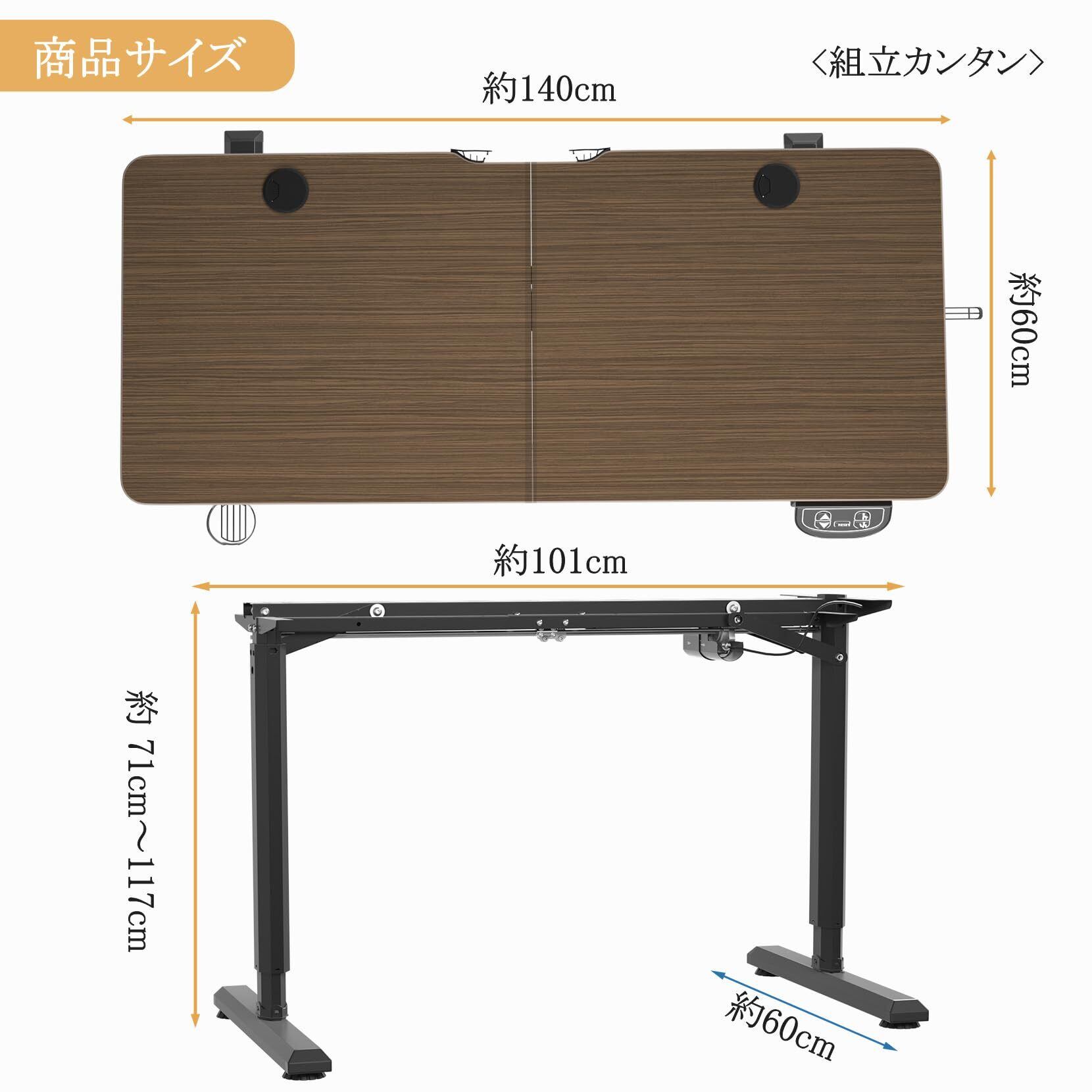 Dripex 電動昇降デスク 幅140cm 組立簡単 オフィスデスク 昇降式デスク 無階段自動昇降 スタンディングデスク メモリー機能 静音 高さ調節デスク 収納フック付き 最大3年保証 耐荷重約80kg 【幅140x奥行き60cm】