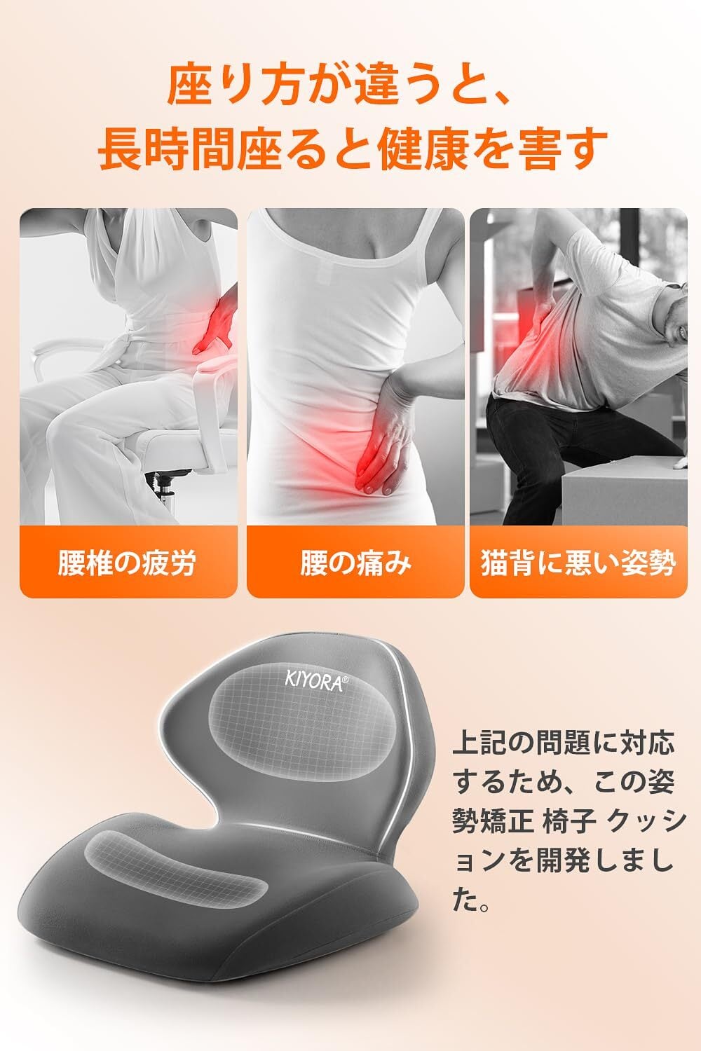 【座布団一体型】长時間間違った座り方による、腰椎疾患、腰痛、頚椎痛、猫背、体の歪みなどの悩みがありますか? 弊社は何万回もの試験を経て、この革新的な座布団を誇らしげにご紹介いたします! これは単なるクッションではなく、座り姿勢を矯正し、腰椎を保護し、腰部の不快感や痛みから解放される。 弊社の椅子クッションを手に入れれば、長時間座って腰や背中が痛む苦しみから解放され、まっすぐな姿勢と快適な体験を取り戻すことができます! 一緒に健康で新しい快適な体験を迎えましょう!