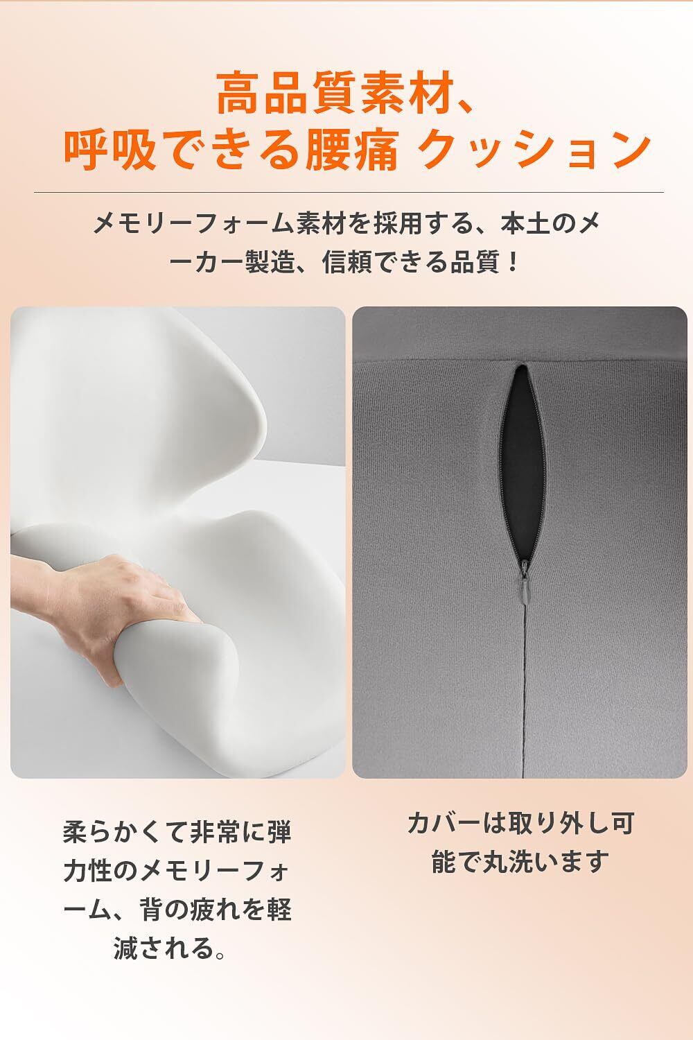 【柔らかい素材クッション】弊社の腰痛 クッションは、低反発メモリーフォームを採用しており、肌触りが非常に柔らかく肌に優しいため、赤ちゃんでも安心してご使用いただけます。さらに、クッションのカバーは取り外し可能な設計で、洗濯も簡単にでき、いつでも清潔で爽やかに保つことができます。この心遣いのあるデザインは、快適性だけでなく、製品の衛生面と掃除のしやすさにも配慮しており、お客様に全方位で快適な体験と便利な使用を提供します。快適な座り姿勢を楽しみながら、製品を清潔で衛生的に保つことが簡単にできます。