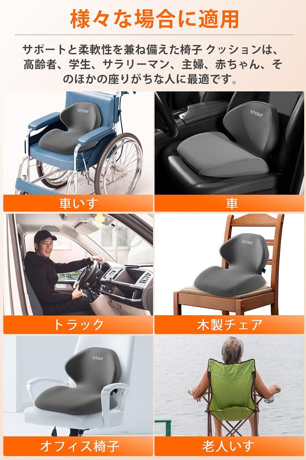 【多様なシーン&椅子 クッション】オフィス:オフィスでデスクに座って長時間仕事をする個人向けに設計されており、座り姿勢を改善し、腰部の圧力を軽減し、仕事効率を向上させます。 ドライバー:長時間の運転やプロのドライバー向けに適しており、追加の腰部サポートを提供して長時間の運転による不快感を軽減します。 学生:学習中に使用する学生向けに最適で、正しい座り姿勢を保ち、腰部のを軽減し、学習効率を向上させます。 ゲーマー:コンピューターゲームをプレイする際に長時間座っているゲーマー向けに設計されており、腰部の圧力を軽減し、ゲーム体験を向上させます。 高齢者や腰部不快症の人々:腰部に問題がある高齢者や腰部不快症の人々に適しており、痛みを軽減し、生活の質を向上させます。 多様なシーンや人々に適用可能なデザインにより、この一体型シートクッションはさまざまなニーズを満たし、快適な座り姿勢のサポートと腰部保護を提供します。