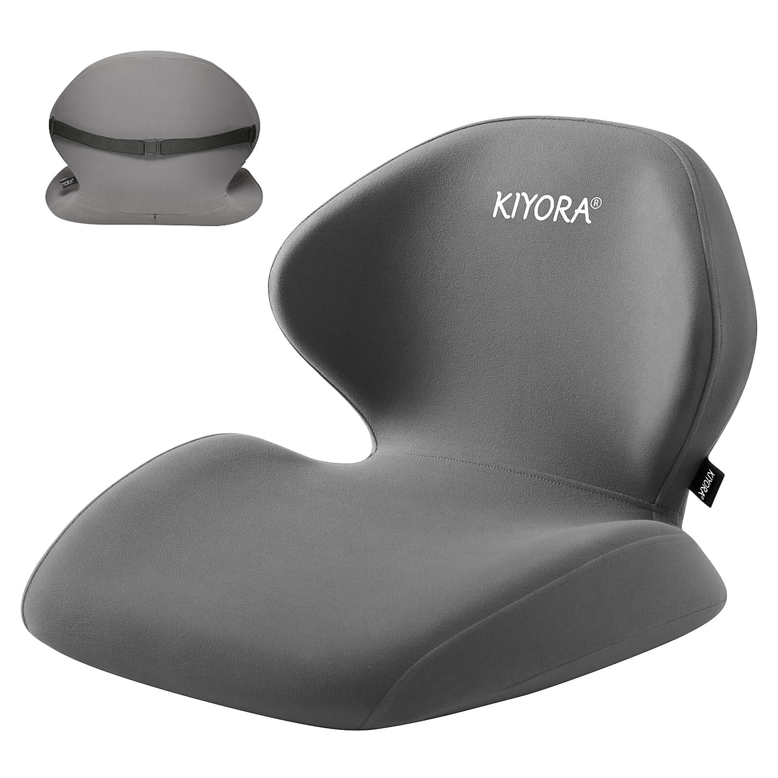 【新着商品】椅子 クッション KIYORA 腰痛 クッション 姿勢矯正 痔 座布団 ランバーサポート 一体型 骨盤から腰をサポート 腰の痛みがない 腰椎椎間板ヘルニア予防 腰痛改善 グッズ 車椅子用 アジャスター紐付き 美尻効果 座ぶとん・背あ(一体型-灰色)