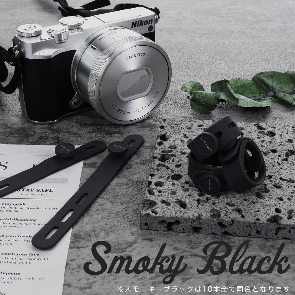 (モッテル) sofumo ソフトタッチ ケーブルバンド 繰り返し使える シリコン 便利グッズ ドライヤー/ヘアアイロン 各色2本 10本セット スモーキーブラック MOT-CBBAND02-BK