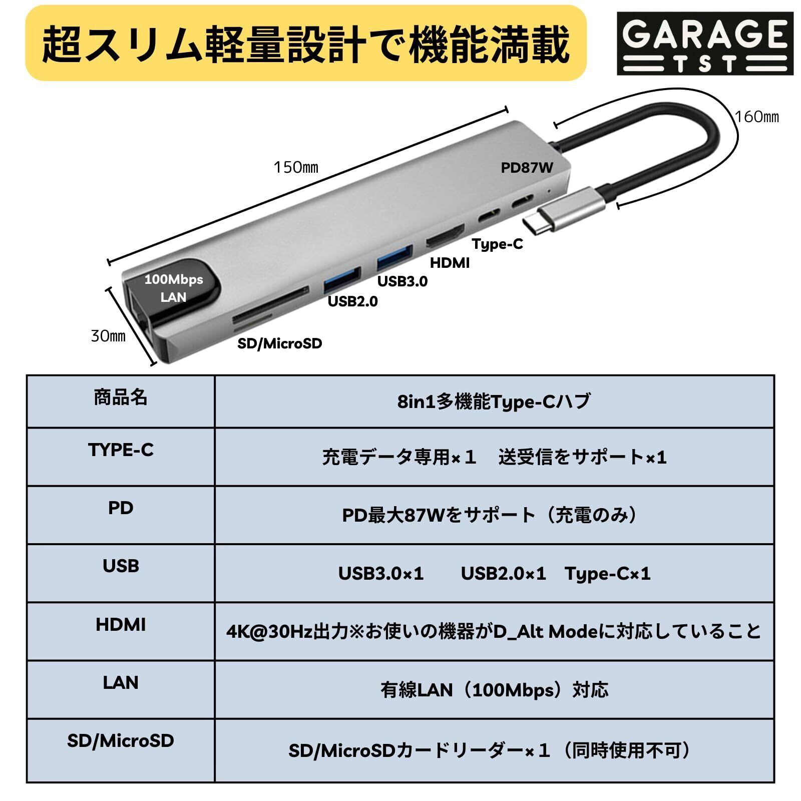 プラグアンドプレイ対応のType-cUSBハブで即使用可能。