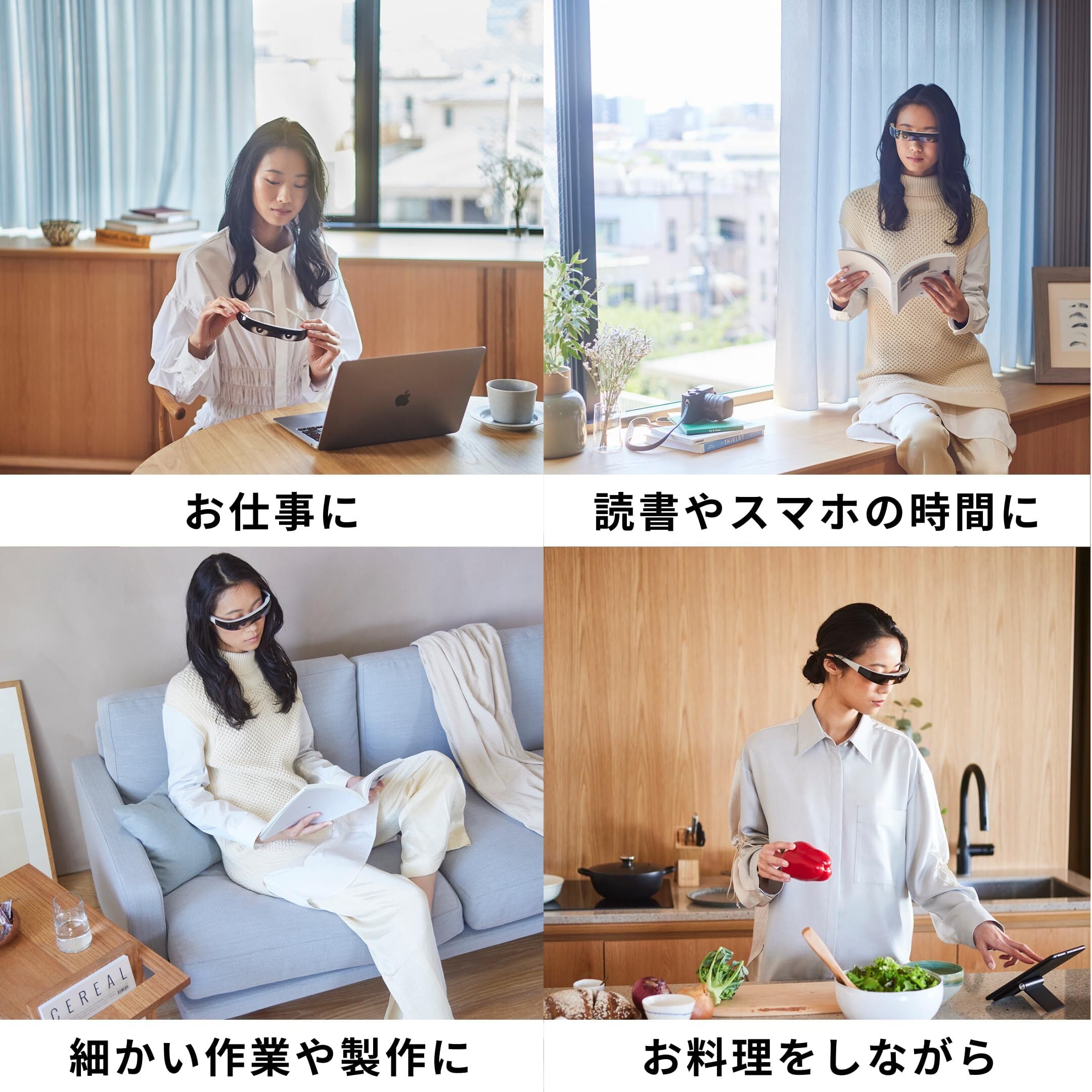 オートフォーカス機能により、ハンズフリーで眼のピント調節をサポートします。断続的な近接作業、両手がふさがる細かい作業、近くと遠くを繰り返し見る場合など、活用シーンは様々です。