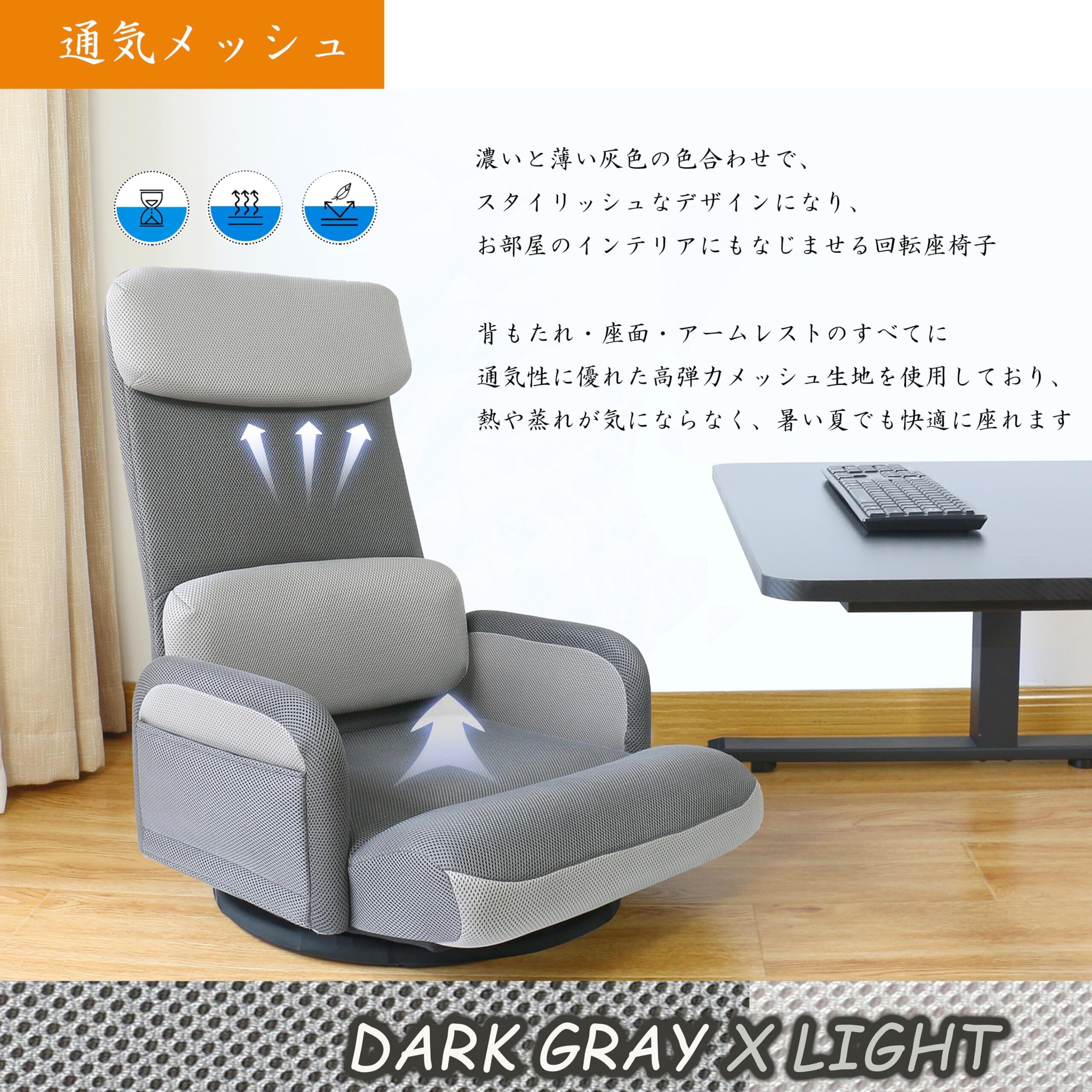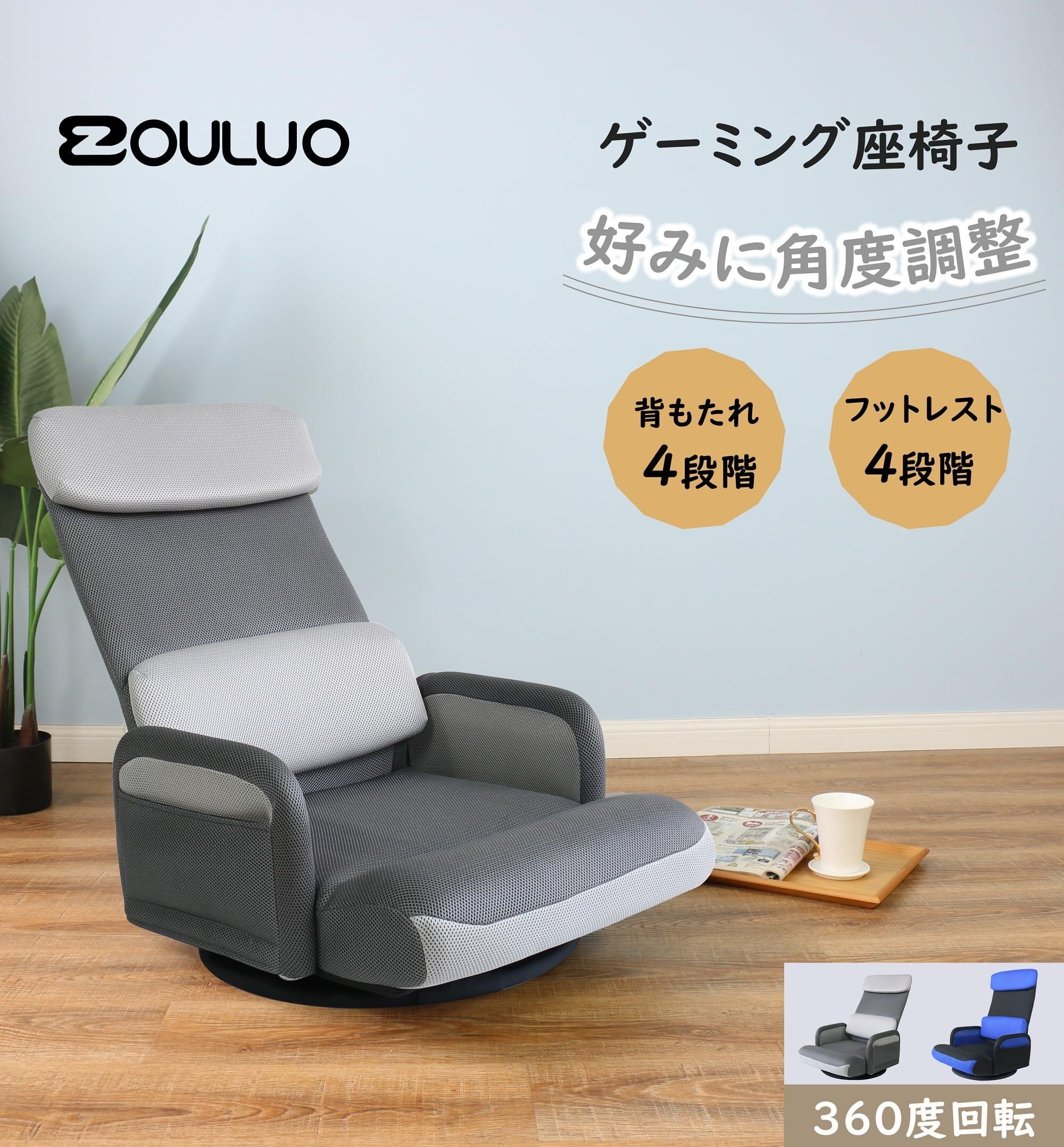 【在庫処分】座椅子 肘掛け付き 回転座椅子 床置きゲーミングチェア ハイバック 背もたれ4段階+脚部3段階リクライニング 小物収納ポケット2個 和室に馴染む事務座いす テレワーク疲れない 通気性メッシュ (肘付き回転式、 ブルー)