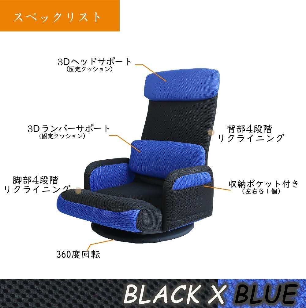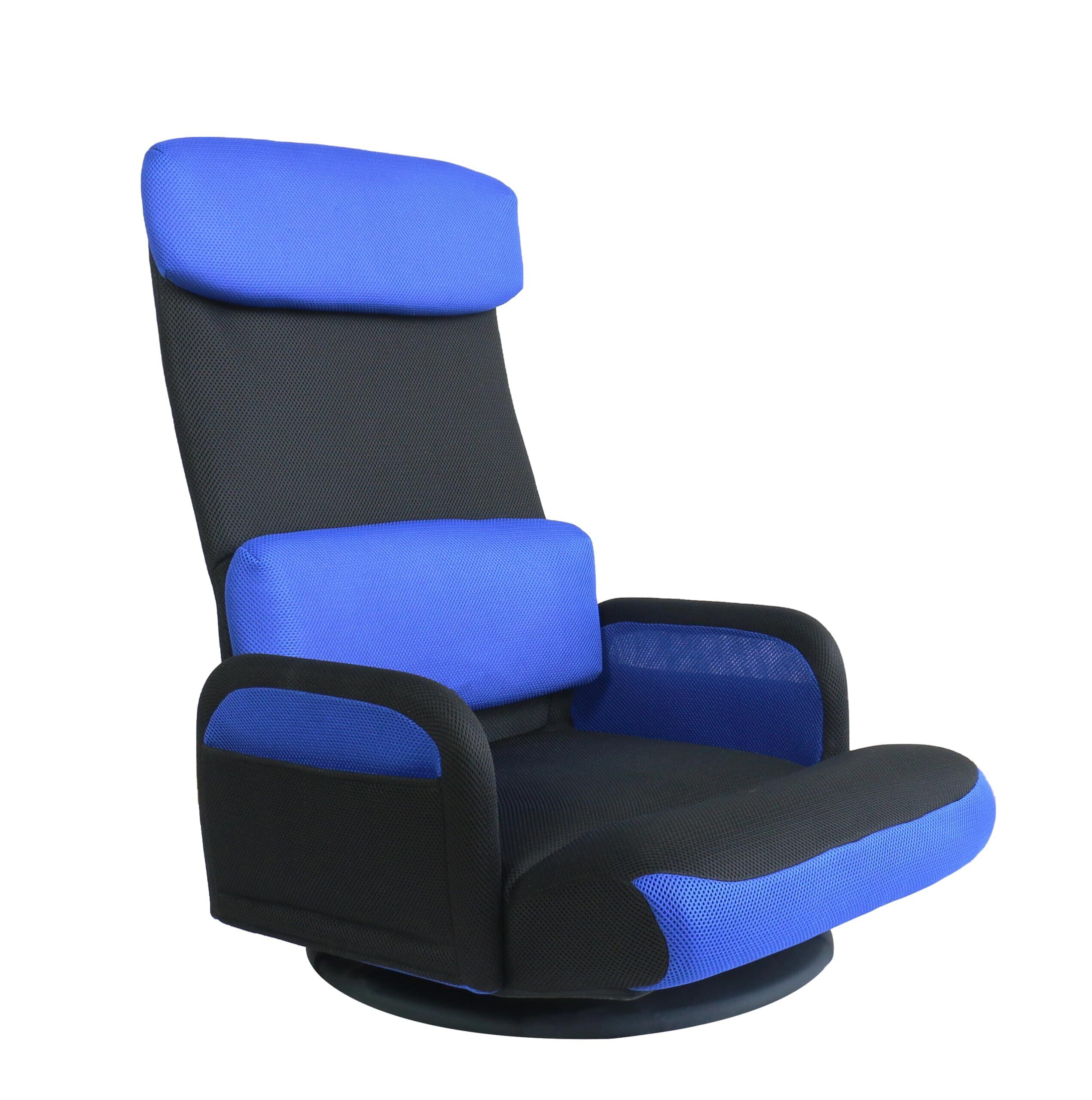 座椅子 肘掛け付き 回転座椅子 床置きゲーミングチェア ハイバック 背もたれ4段階+脚部3段階リクライニング 小物収納ポケット2個 和室に馴染む事務座いす テレワーク疲れない 通気性メッシュ (肘付き回転式、 ブルー)