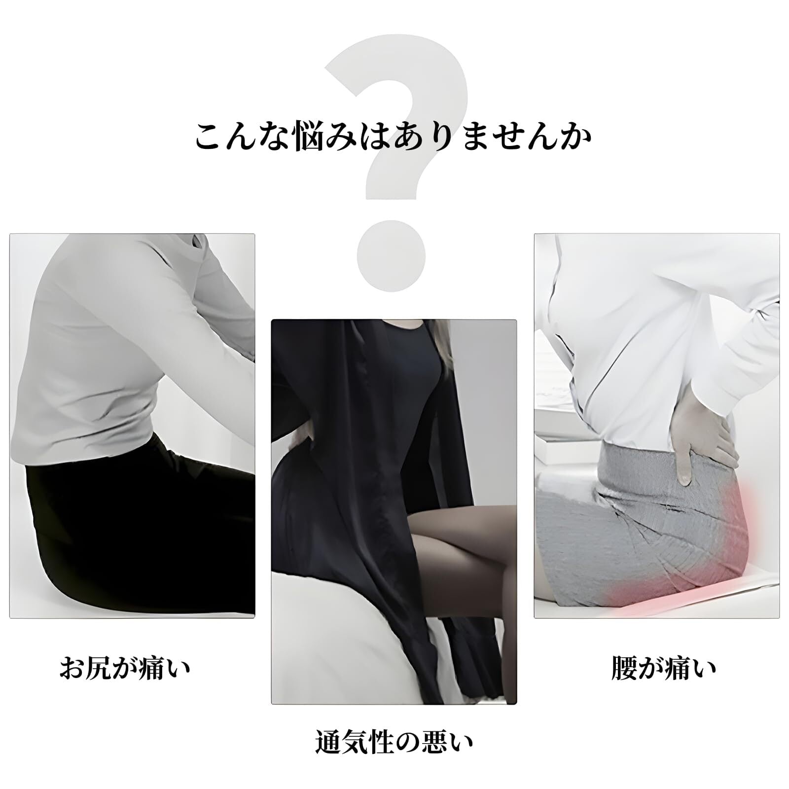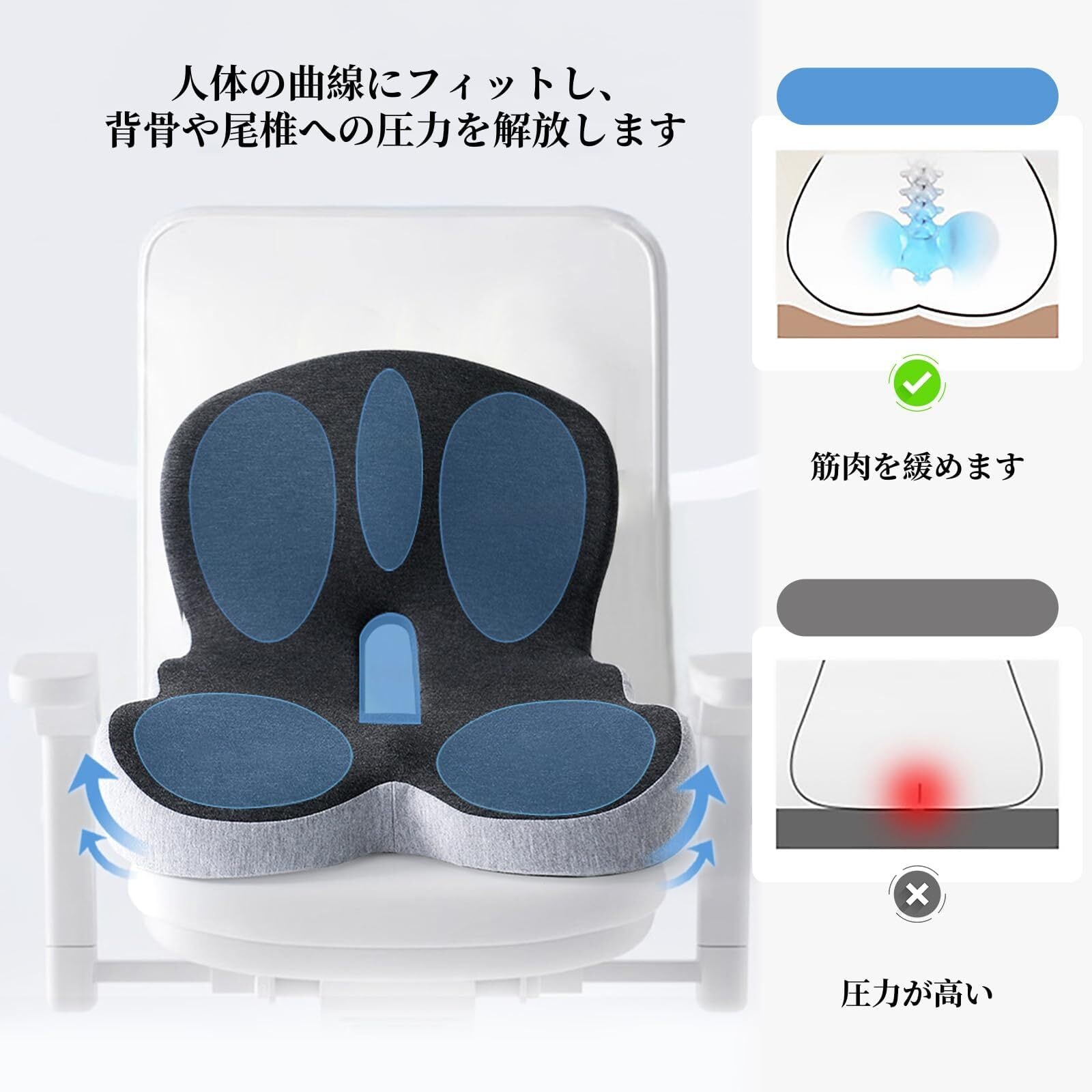 【軽減のための設計】体圧を均等に分散させ、特に長時間のデスクワークや運転での使用に最適です。長時間の使用でも快適さが持続し、を軽減します。