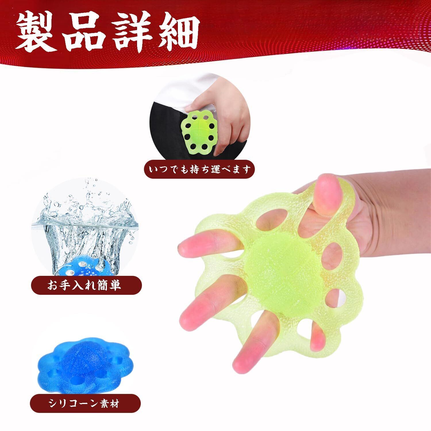 【数量限定】DEEYOTA 握力 トレーニング トレーニング 握力器具 高齢者 リハビリ 筋トレ 手の握力トレーニング 指の強化 訓練 ストレス解消 男女兼用 介護用品 便利グッズ【3個セット】グリーン