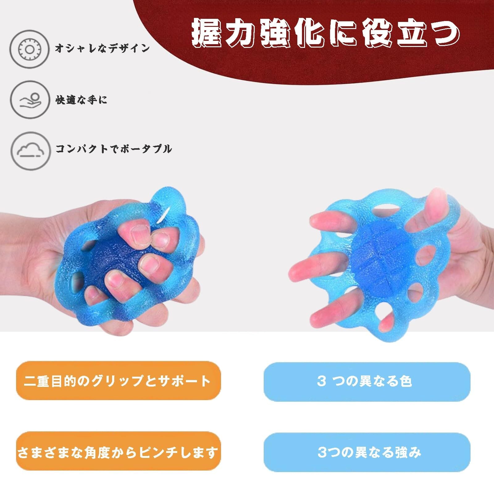 【握力強化】 手首に優しく、女性でも握りやすい安心設計の握力 ボールです! ボルダリングのトレーニング 手や指のリハビリ、ピアノやトランペットなど楽器、高齢者のボケ防止、など 手や指の運動全般に利用できます。