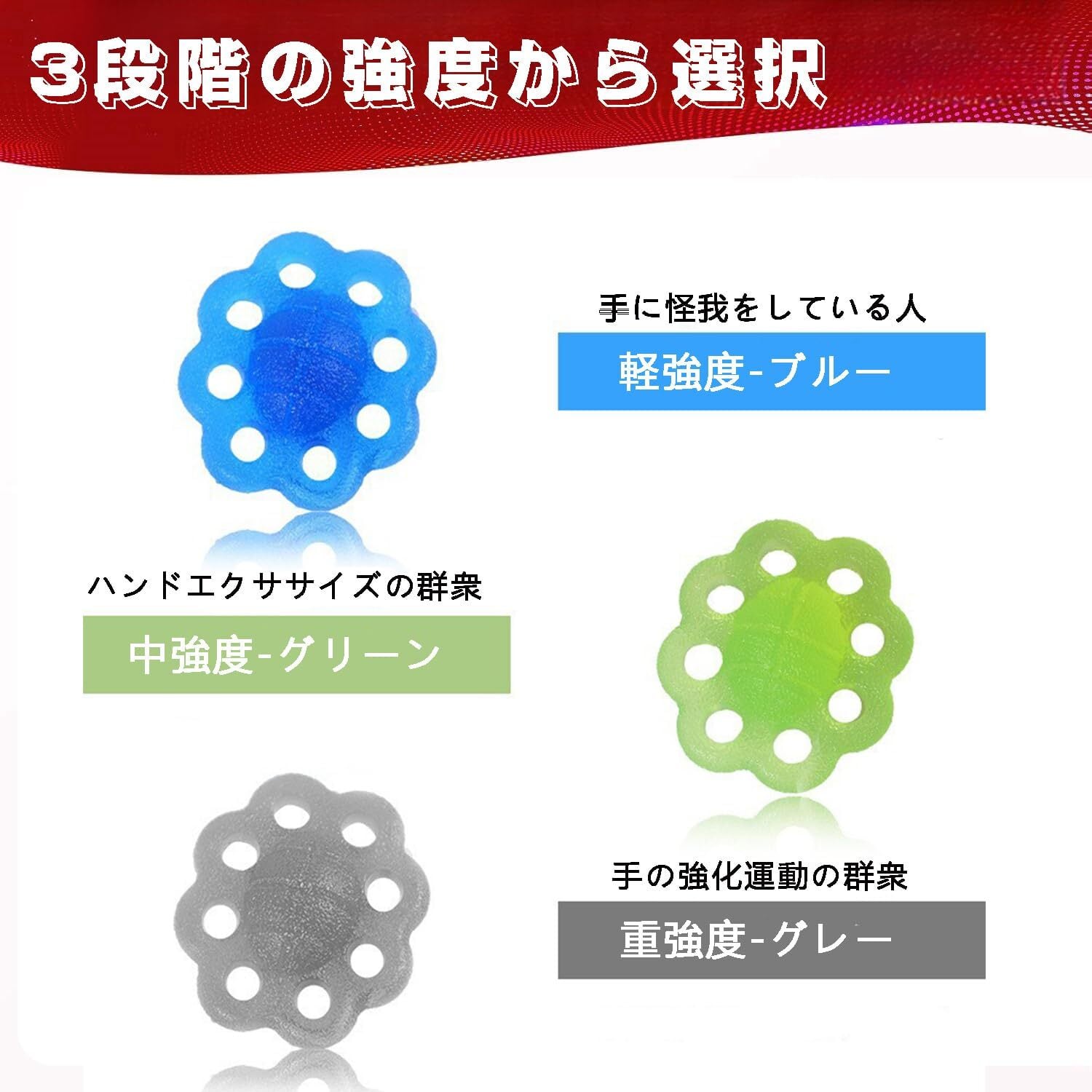 【便利な3個セット】お得な3点セット!一般的なハンドグリッパーでは抵抗が強すぎたり見た目が大きいため扱いに困ることがありますが 当商品は低い負荷から始められるのでリハビリの筋トレに最適です。