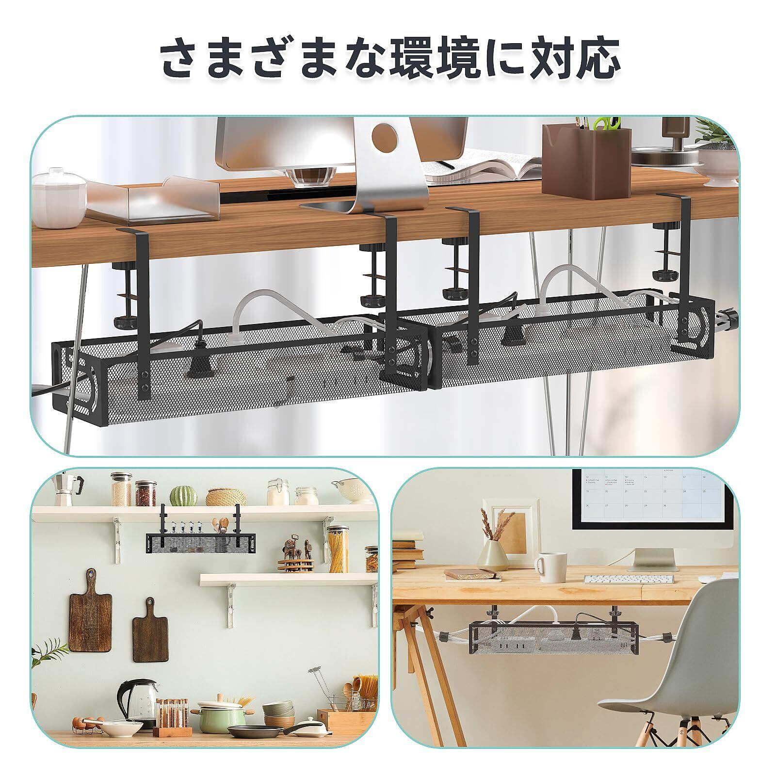 【完璧な組み合わせ】デスクトップケーブル管理キットには、1つのケーブル管理トレイ、5つのケーブルバンド、2つの三孔ケーブルクリップ、1つの取り付けねじ、1つのスパナが含まれており、このコンピュータ線整理器はテーブルの周りに置くだけでなく、キッチンやアウトドアでも使用するのに適しています。あなたのオフィスと家を整理して美化します。