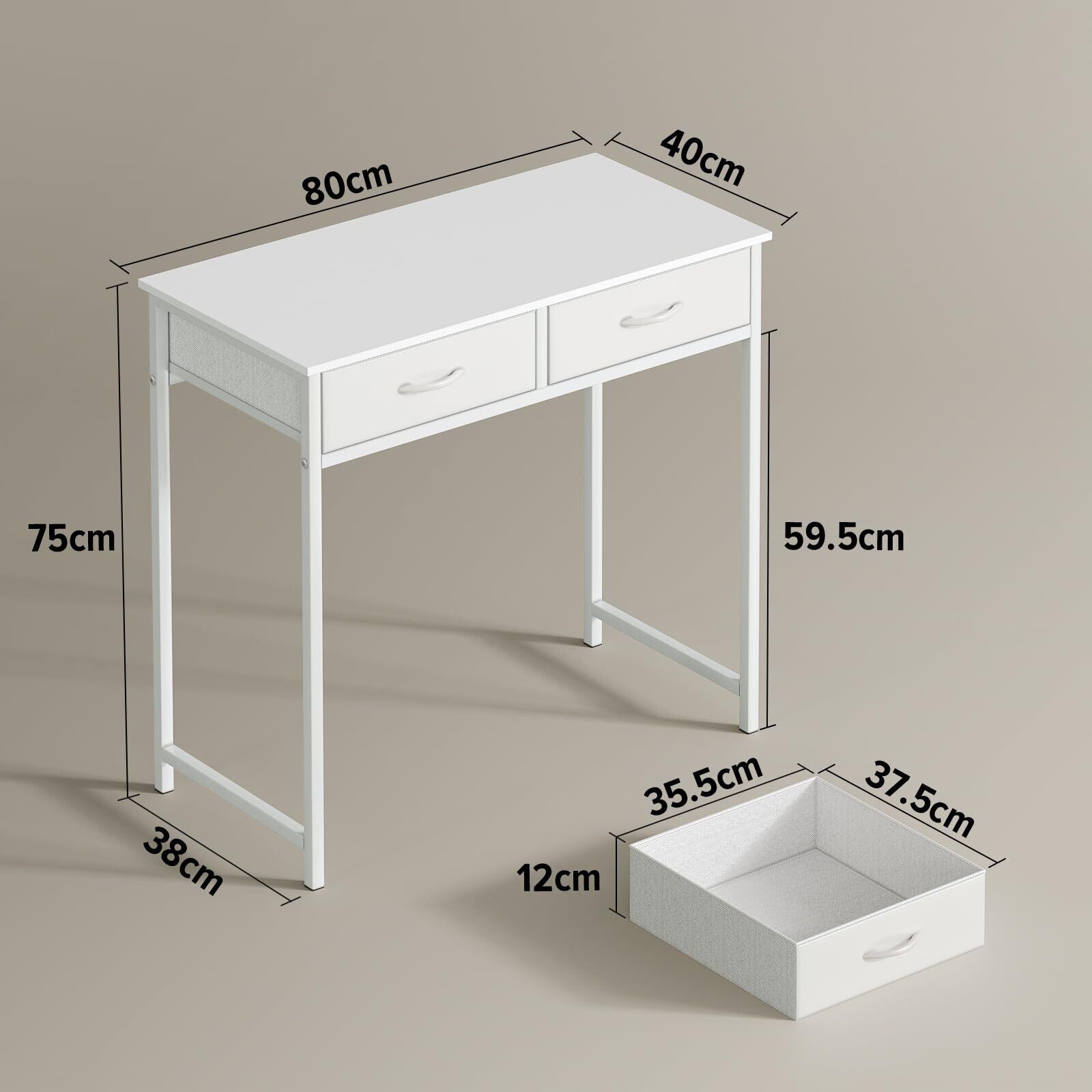 WOHOMO デスク 引き出し付き 収納 机 small study desk and makeup table for center living room bedroom コンパクト 勉強机 学習机 パソコン pcデスク 一人暮らし用 作業机 テレワーク 桌子 シンプル 电脑桌 事務机 ドレッサー 幅80×奥行40×高さ75cm 白い