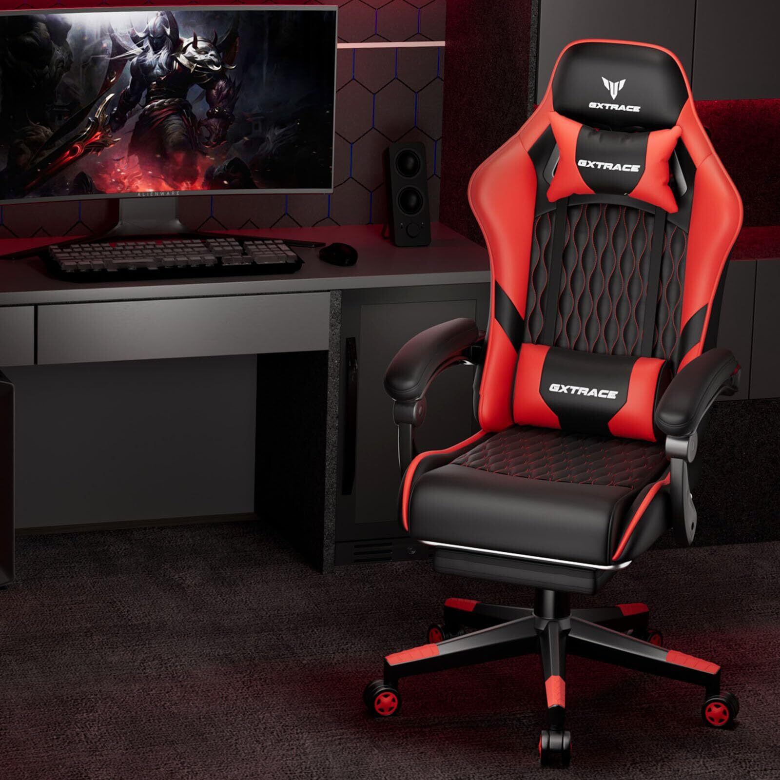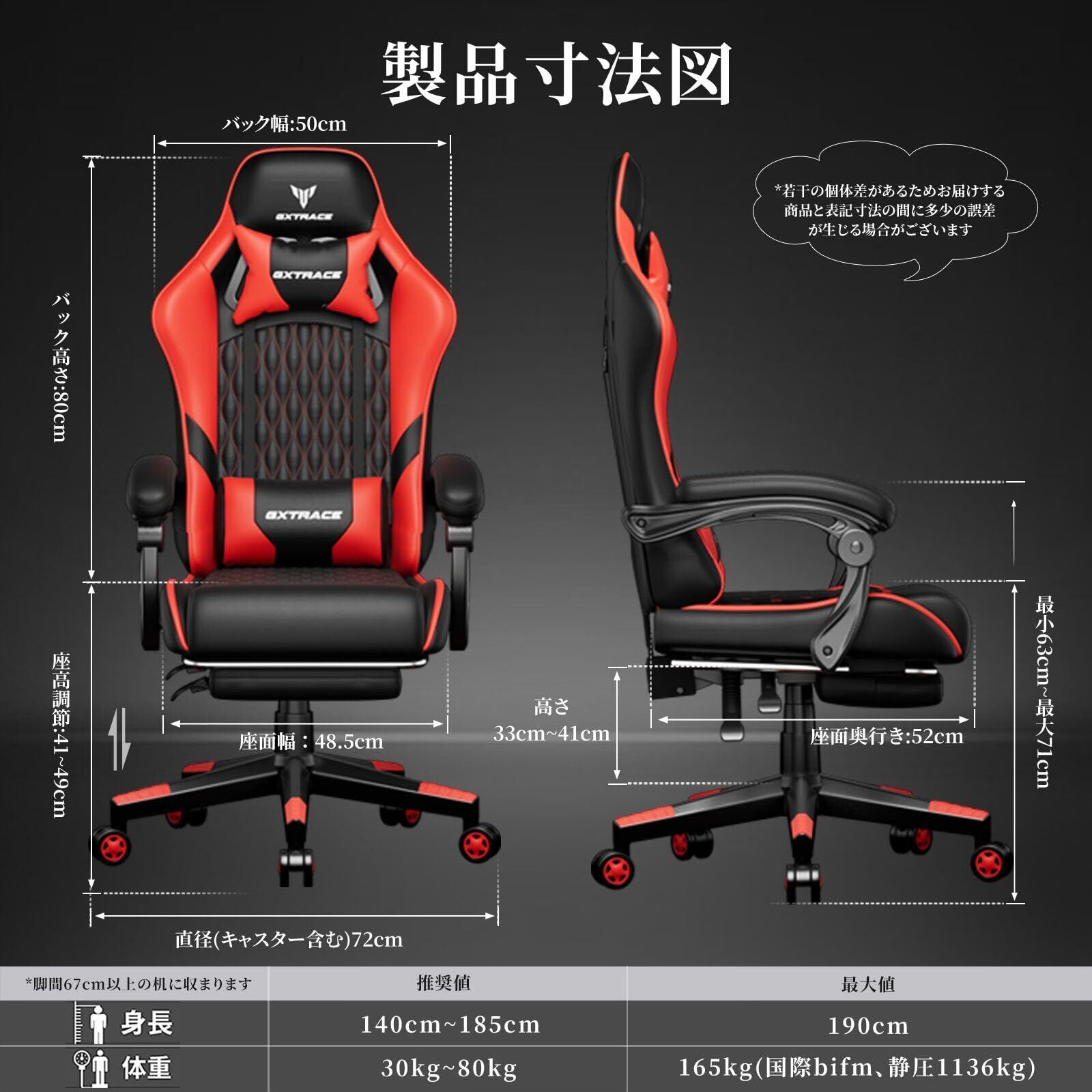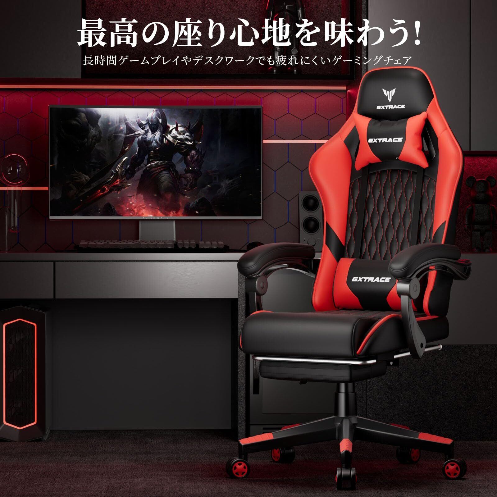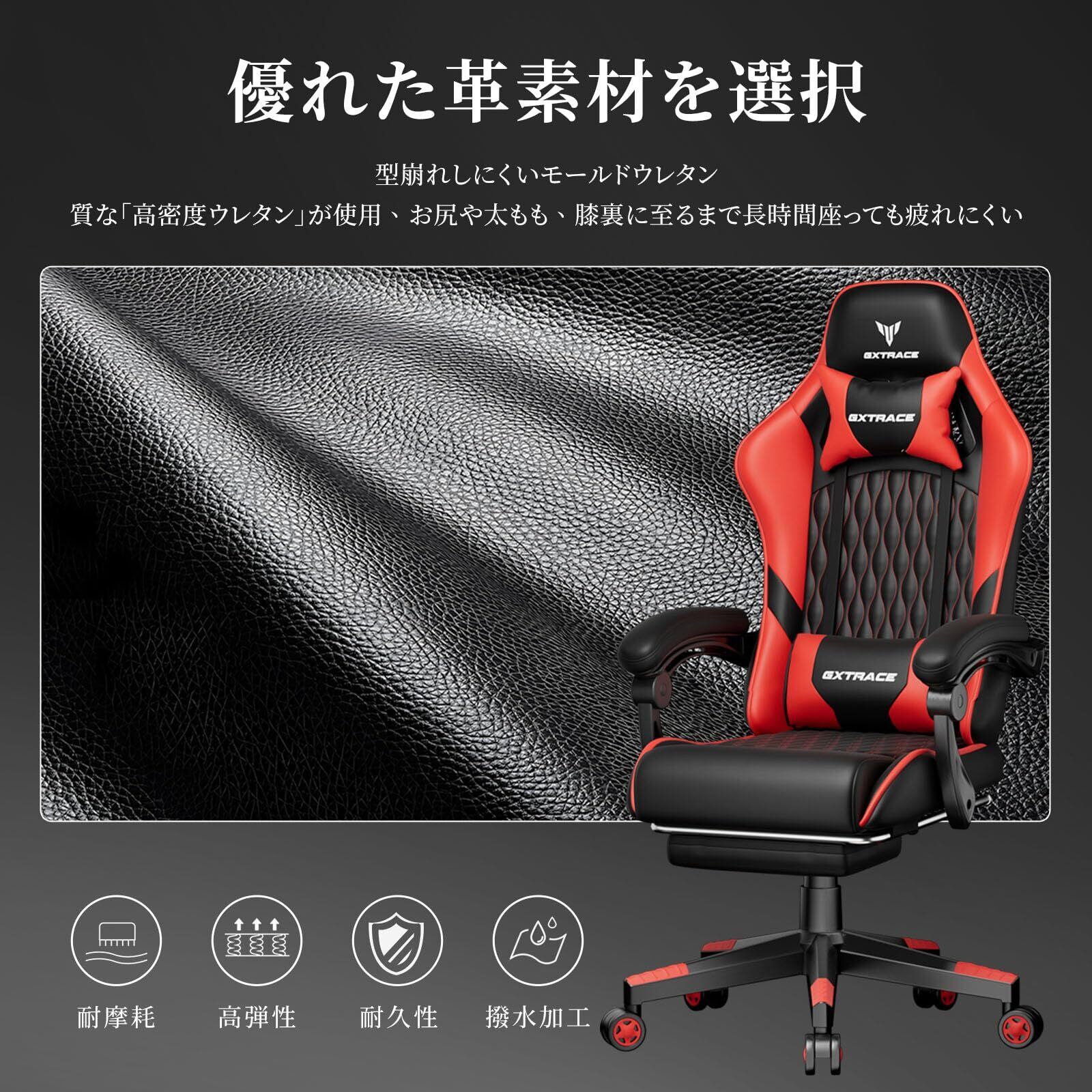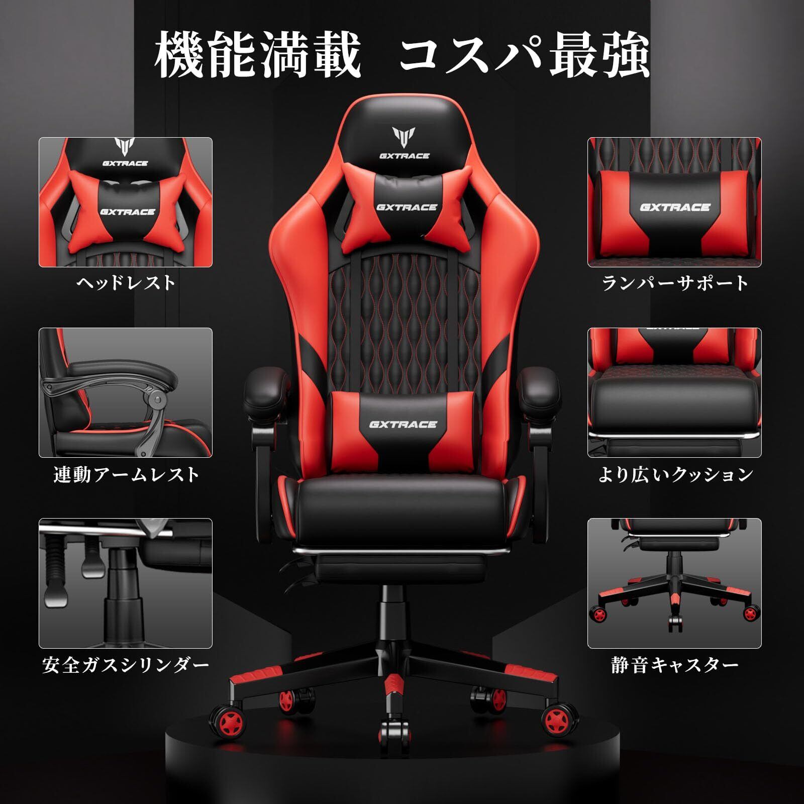 ゲーミングチェア ゲームチェア レッド オフィスチェア デスクチェア パソコンチェア 椅子 オットマン リクライニング(RED)