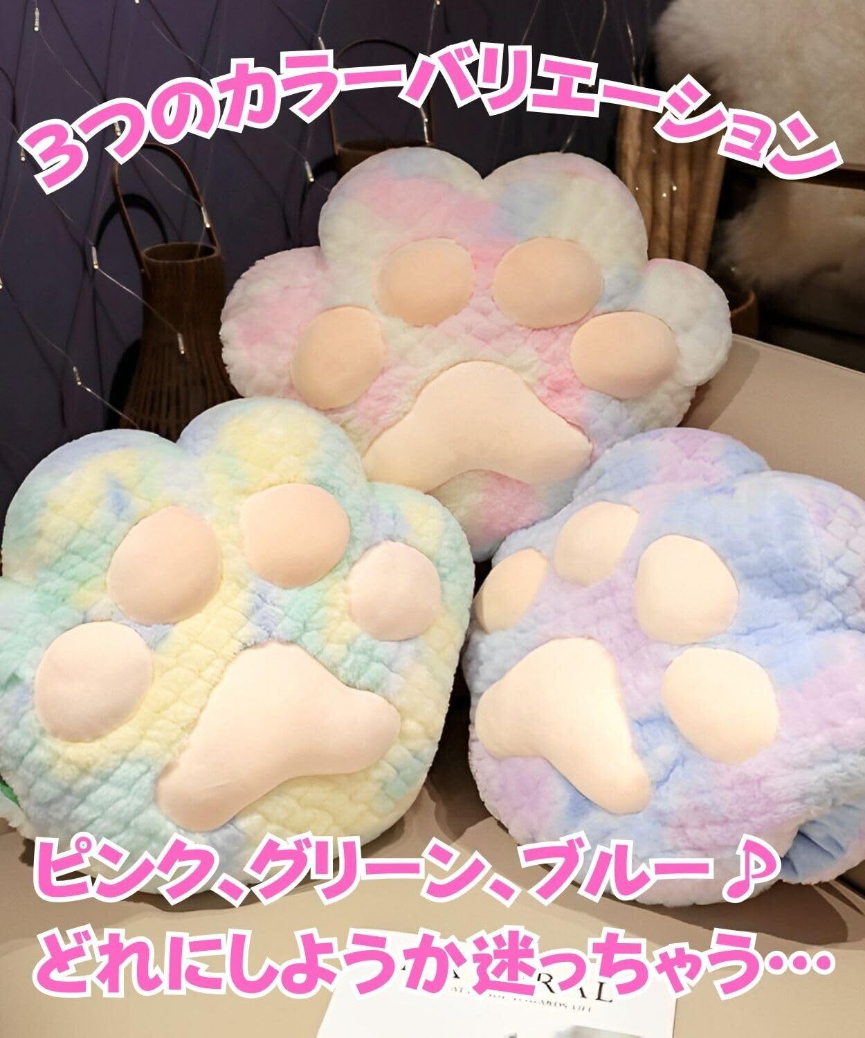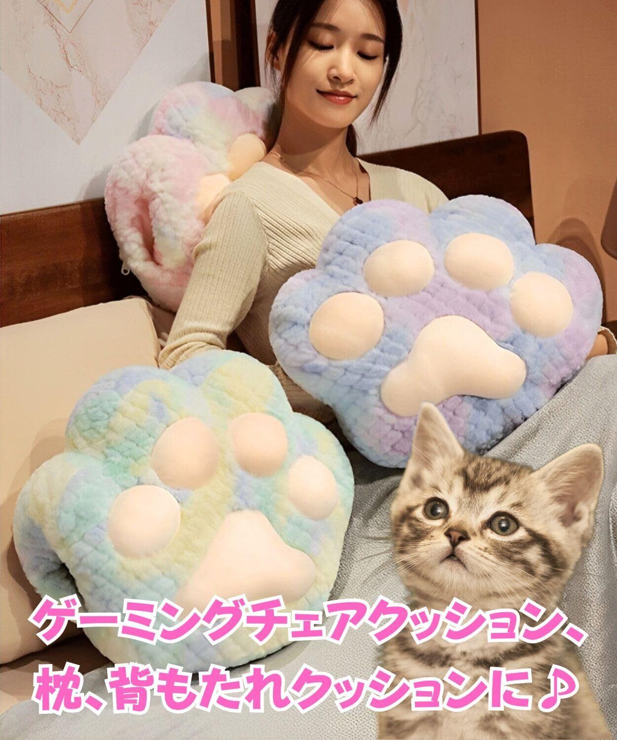 【かわいいデザイン】この猫の肉球クッションは、そのユニークなデザインが特徴です。