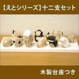 十二支と白い台座のセット。小さくてかわいい木彫りの干支の、小さな耳や足も全て天然無垢材から掘り出して作っています。