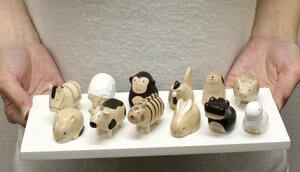 木彫り動物インテリア 木製えとセット【T-Lab】
