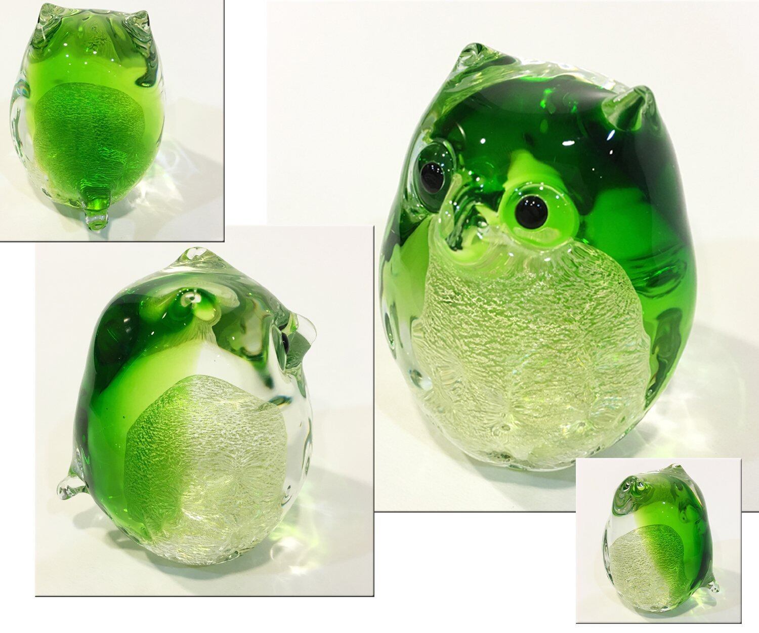 特徴=ハンドメイド、ガラスが持つ丸みを梟で再現しました。