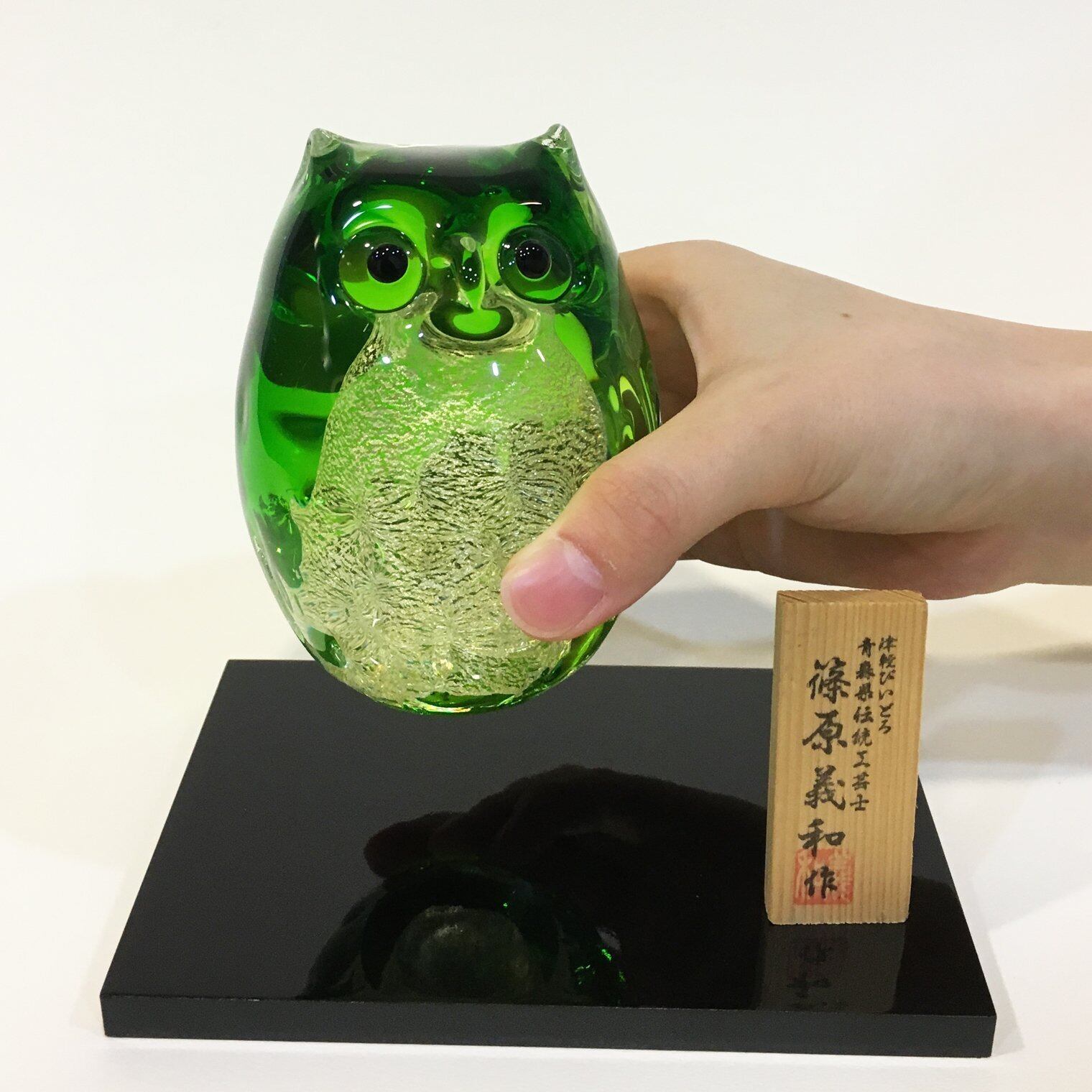 【在庫セール】アデリア(ADERIA) 津軽びいどろ 置き物 親ふくろう 翠 日本製 化粧箱入り インテリア オーナメント 可愛い 鳥 ギフト 女性 母の日 父の日 夫婦 男性 引越し祝い 結婚 挨拶回り プチ 退職 プレゼント 誕生日 贈り物 F71166 | paghag