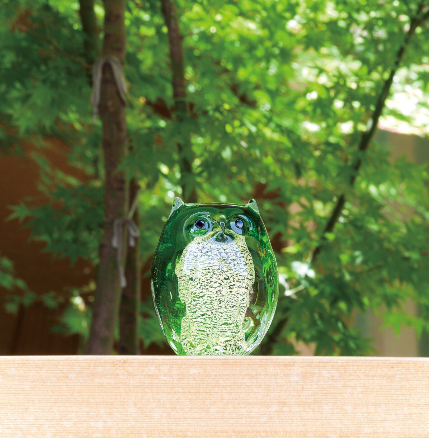 ガラスならではの輝きを持つふくろう。和洋インテリアを選ばず、モダンな空間を演出します。ガラスのキラキラとした瑞々しさで、置く場所によって異なる表情を見せてくれます。