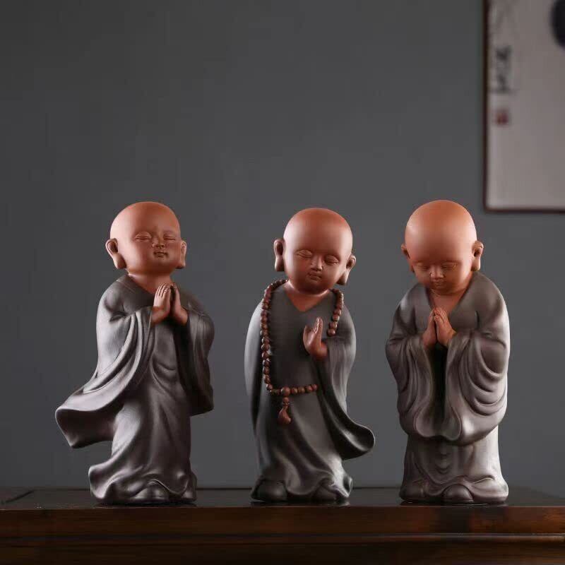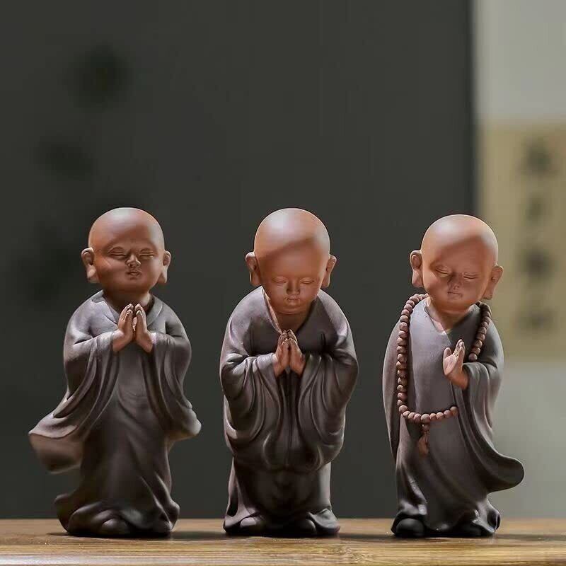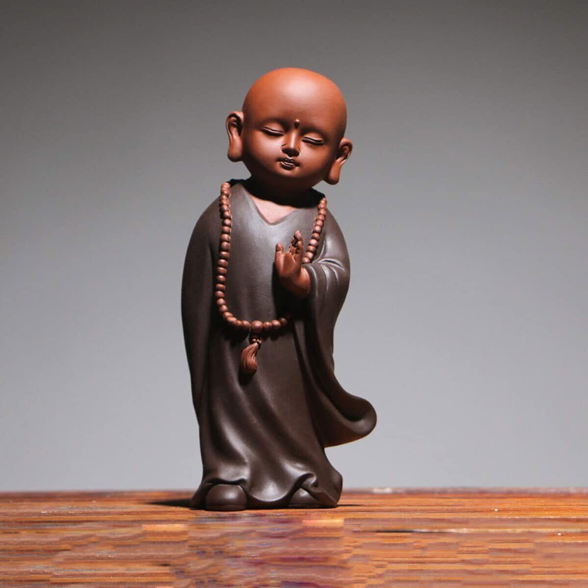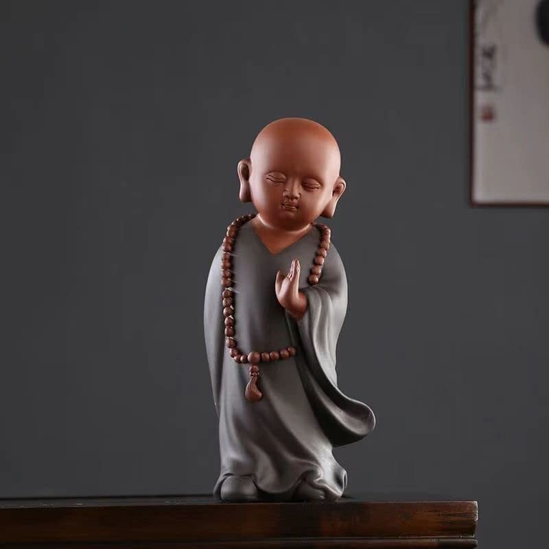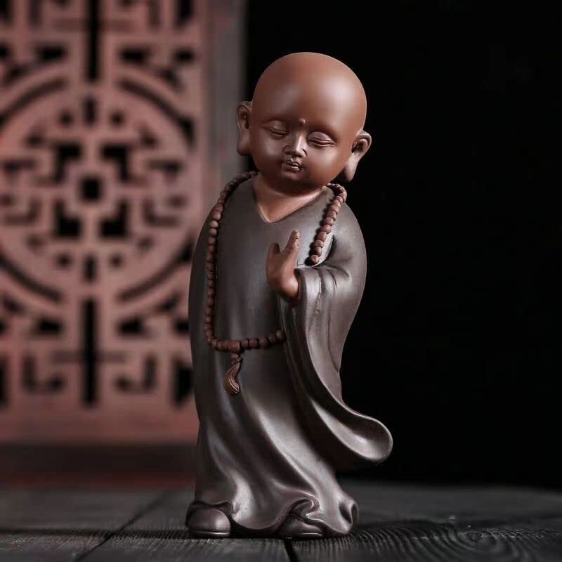 【数量限定】ミニ 小坊主 - 陶器製 我が家のお坊さん 瞑想 可愛い 置物 美術品 縁起物(Color:04)