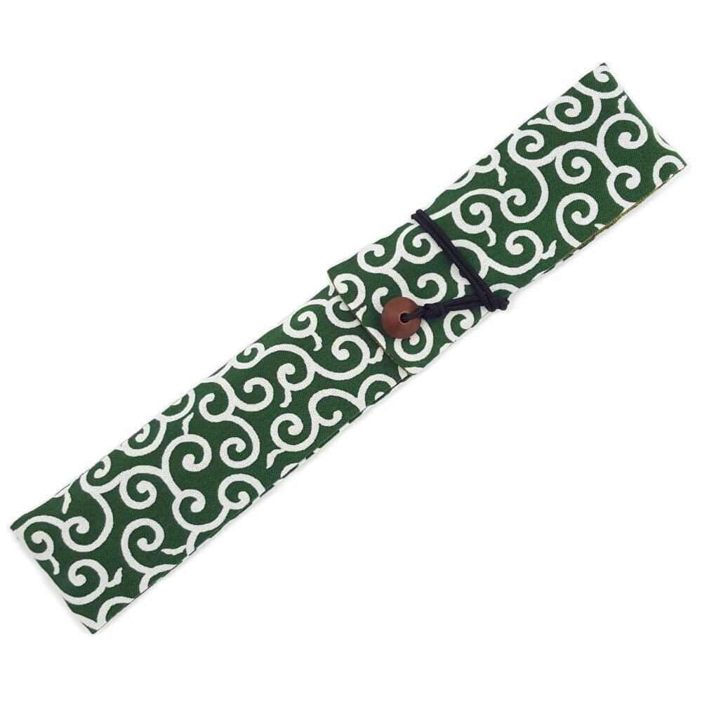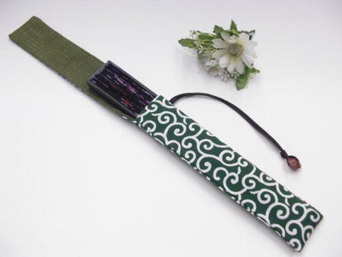 手作り工房FUJITA 扇子入れ 緑×唐草模様 お箸袋にも! 扇子ケース 扇子袋 お箸袋 お箸入れ 和小物 和風小物 和雑貨 和柄