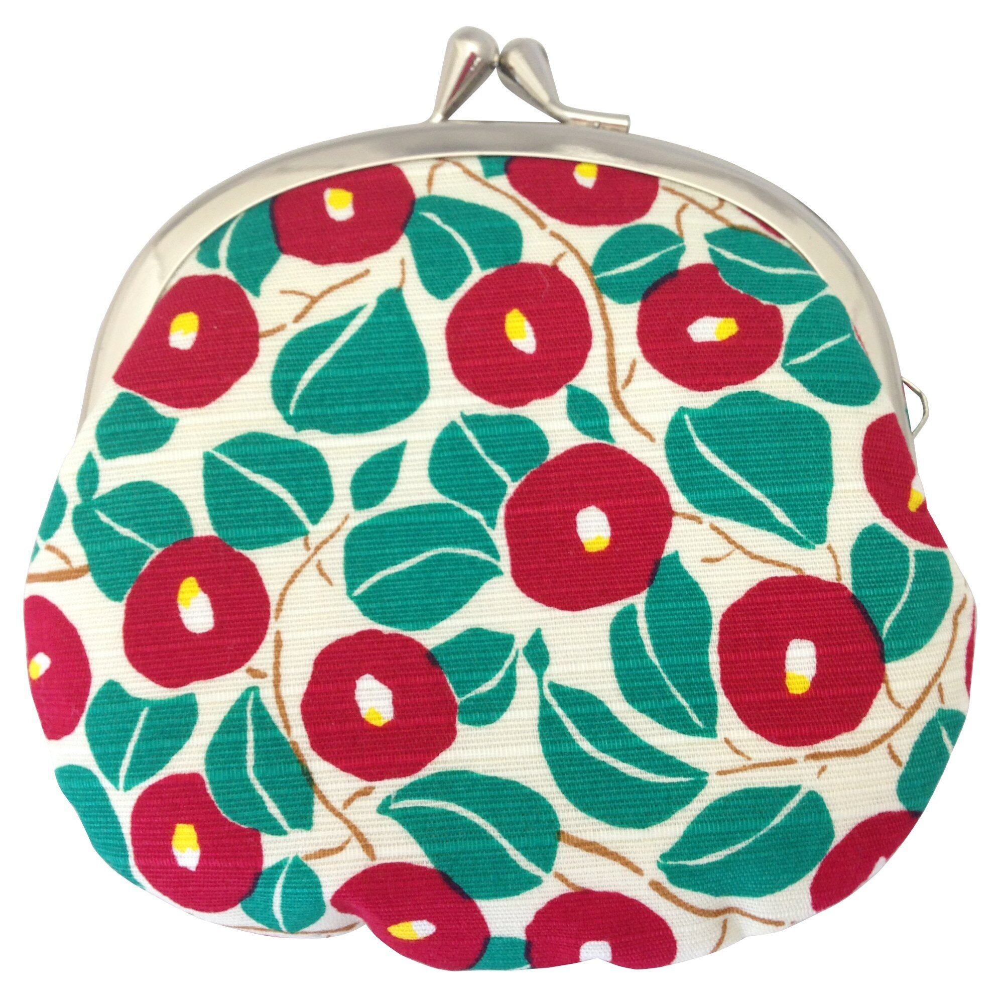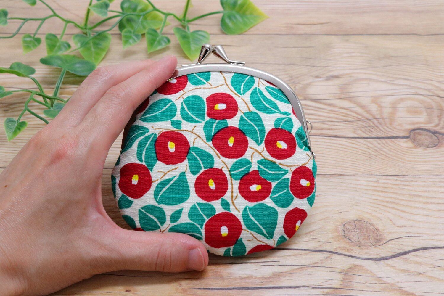 京佑 日本製 がま口 コインケース 夢二 椿 綿 ポーチ 11×11.5cm 3.3寸 小銭入れ 財布 和雑貨 竹久夢二 つばき