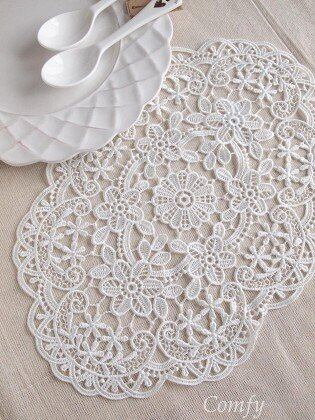 ◆ナチュラルレースの魔法◆ ゴージャスな雰囲気が素敵なギュピールレース! ちょっとしたスペースにかけるだけで、お部屋がやさしい雰囲気になります。 優しく手洗いすれば、美しさ長持ち 約25x35cm ポリエステル100% 色:オフホワイト