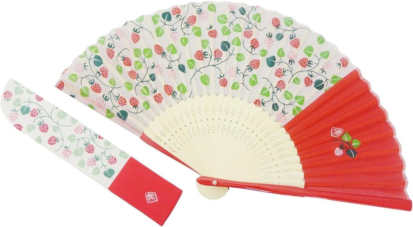 京佑(Kyoyu) 京都扇子 シルク 夢二 いちご 袋付 K-117