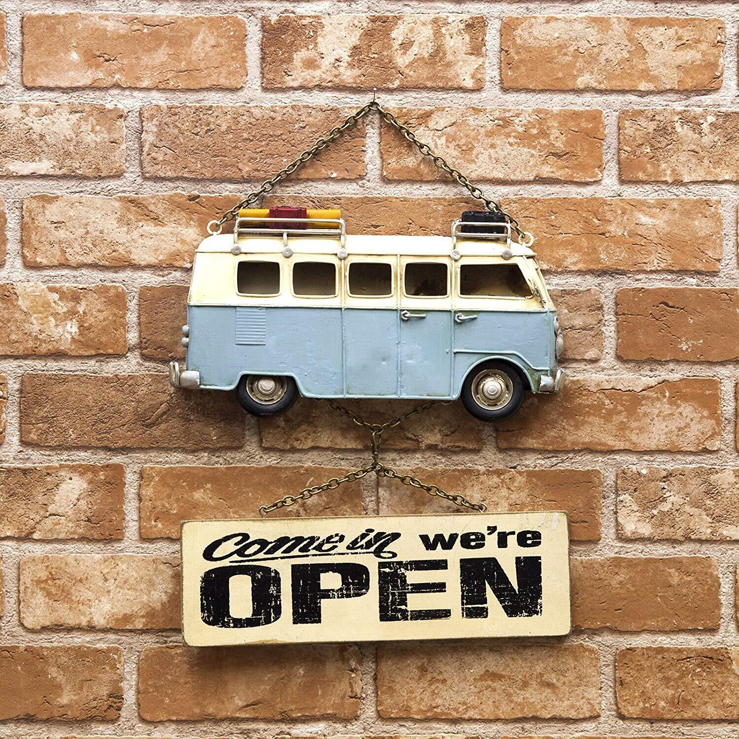 秋月貿易 ワーゲンバス ヴィンテージカー プラッケ WELCOME ボード ブリキ ウッド プレート 看板 インテリア アメリカン雑貨 アメリカ 雑貨 店舗用 W.25 x D.4 x H.23cm
