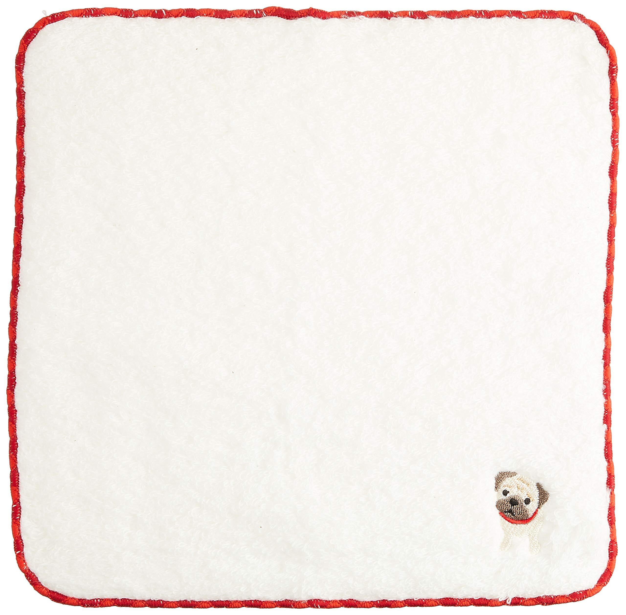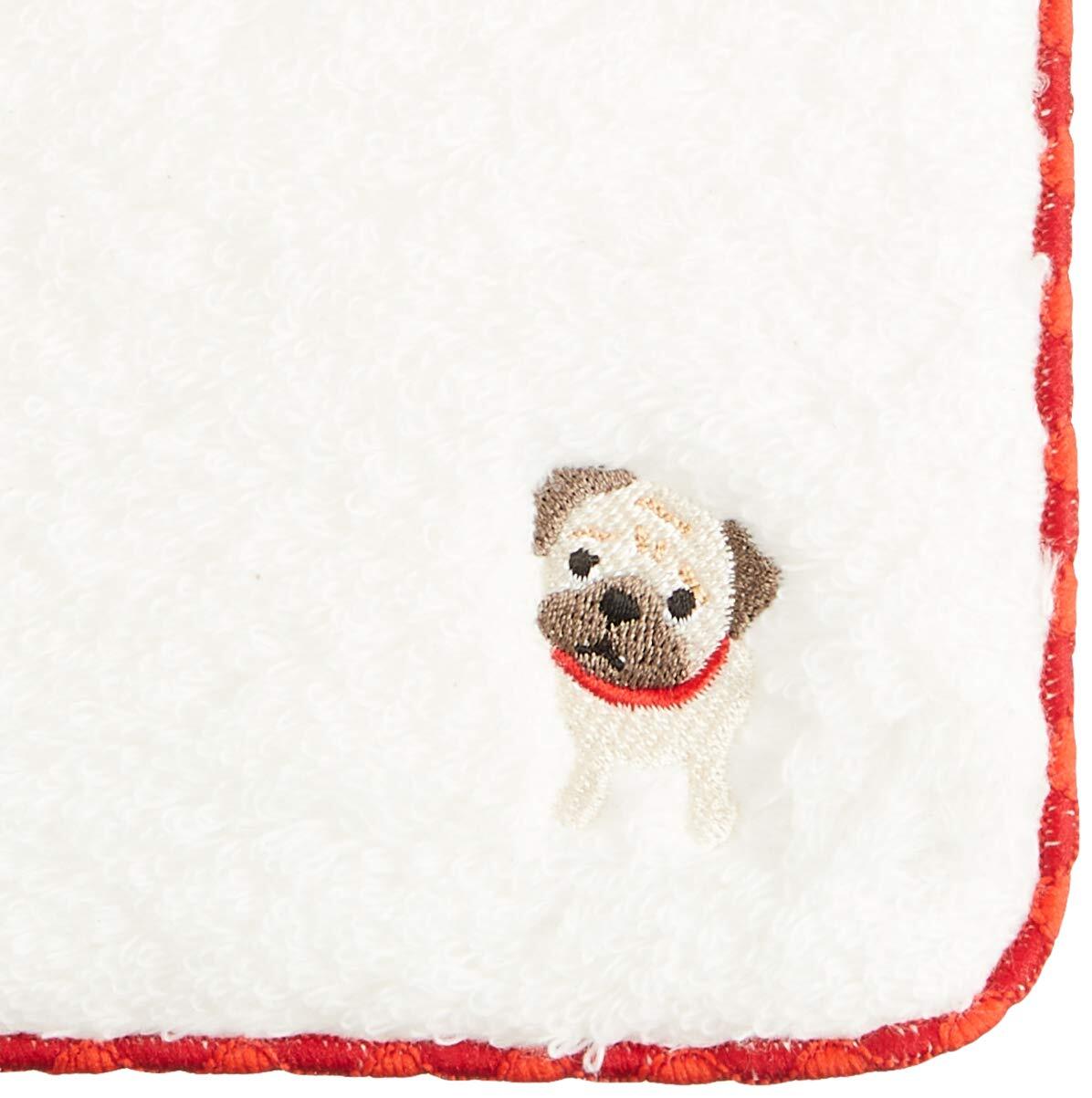 無撚糸パイルのハンドタオル かわいいワンちゃん刺繍付き (パグ)