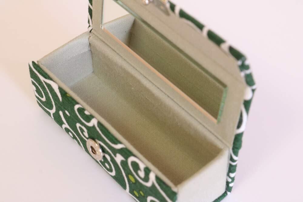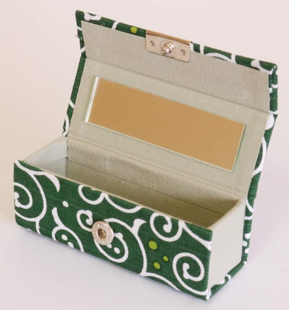 京佑 日本製 リップケース 3.5×9×3.5cm 小物入れ ミラー付き 和雑貨 唐草 ドット 緑