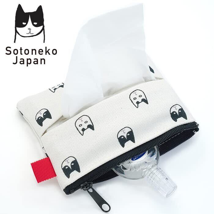 表はティッシュケース、裏面は衛生用品や薬などの小物を入れるのに便利なミニポーチ。猫モチーフなのに甘すぎない、オトナ女子&男性向け猫柄グッズ『ソトネコジャパン』。モノグラムのデザインでさりげなく猫好きアピールできる猫グッズです。