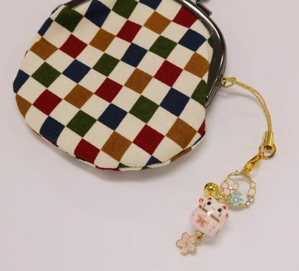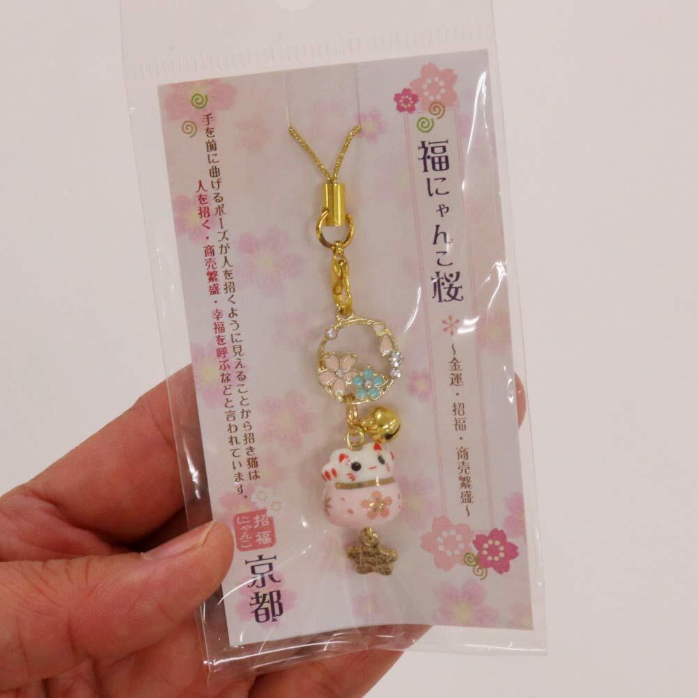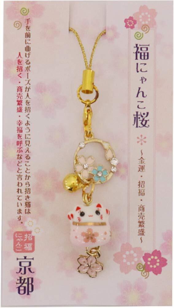 【数量限定】日本製 根付 1.5×2×9cm 陶器 福にゃんこ ピンク 桜