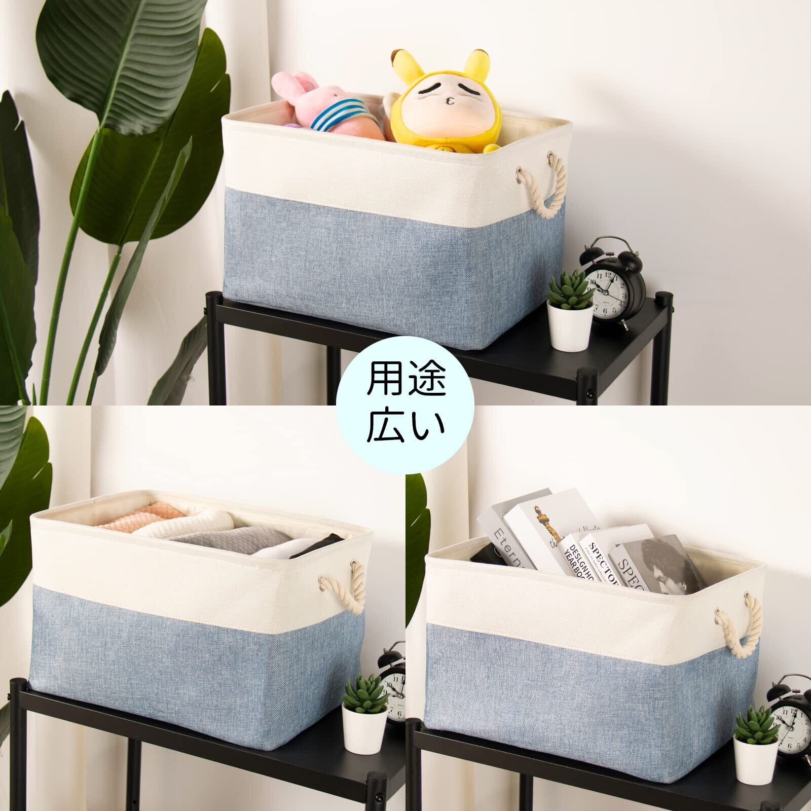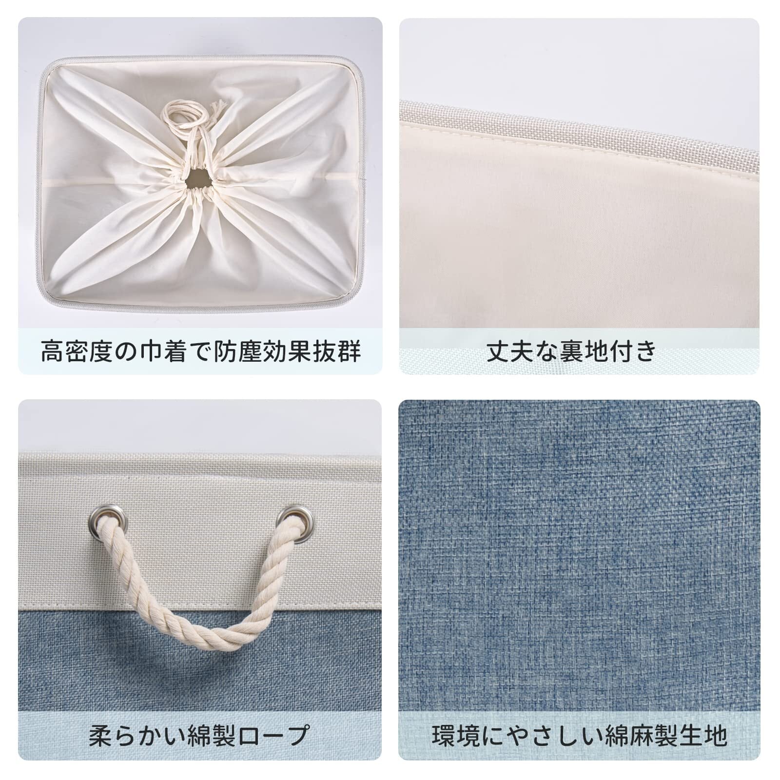 【在庫セール】【 限定】STVICTORY 収納バスケット 収納かご 3個セット 40×30×24cm 無臭 巾着 取っ手付き オシャレな収納ボックス ランドリーバスケット ストレージバスケット 布 洗濯かご インテリア雑貨 衣類 小物収納 引き出し 折り畳み式 綿麻製 防水 防湿 防塵 高耐久性 長方形 (ホワイトブルー) | paghag