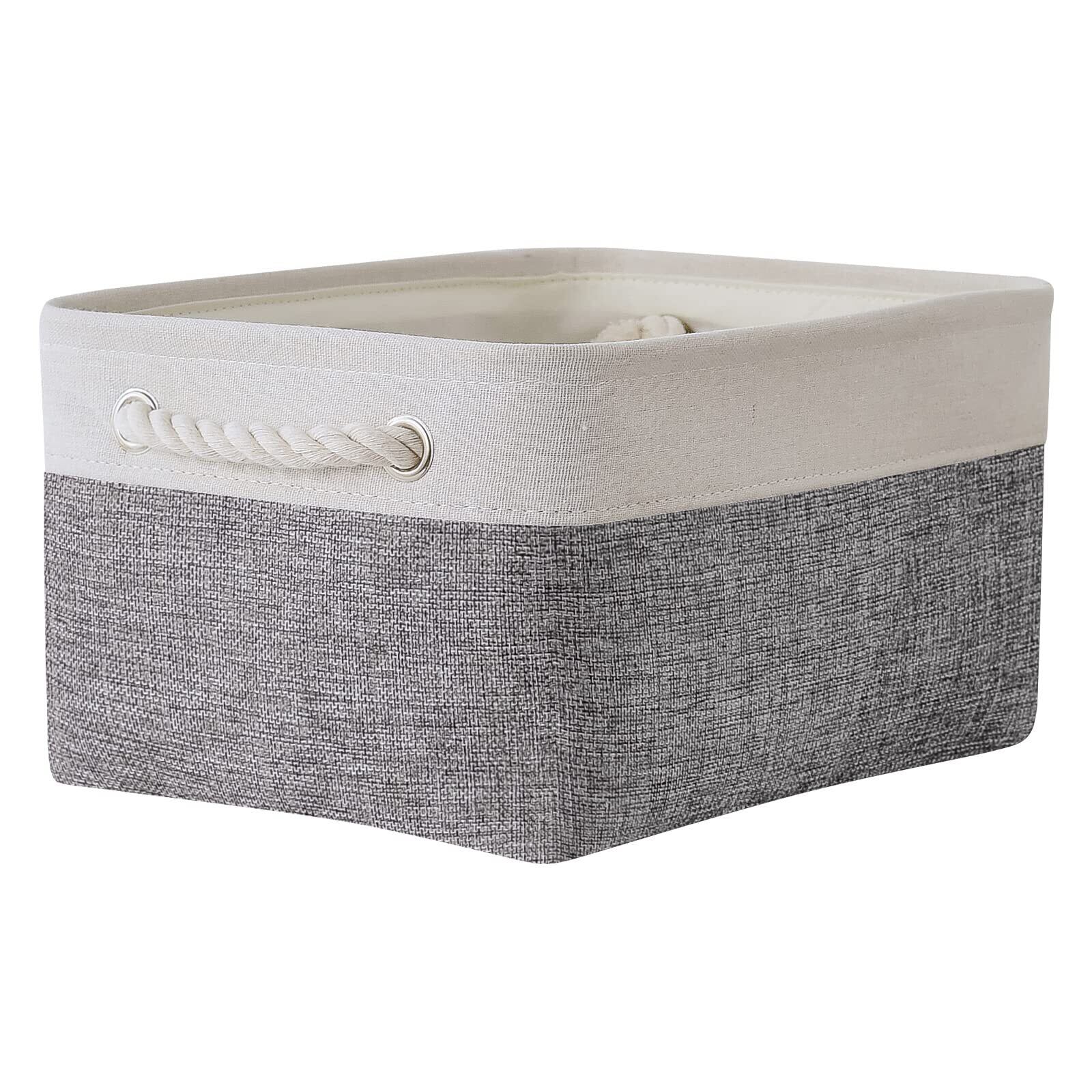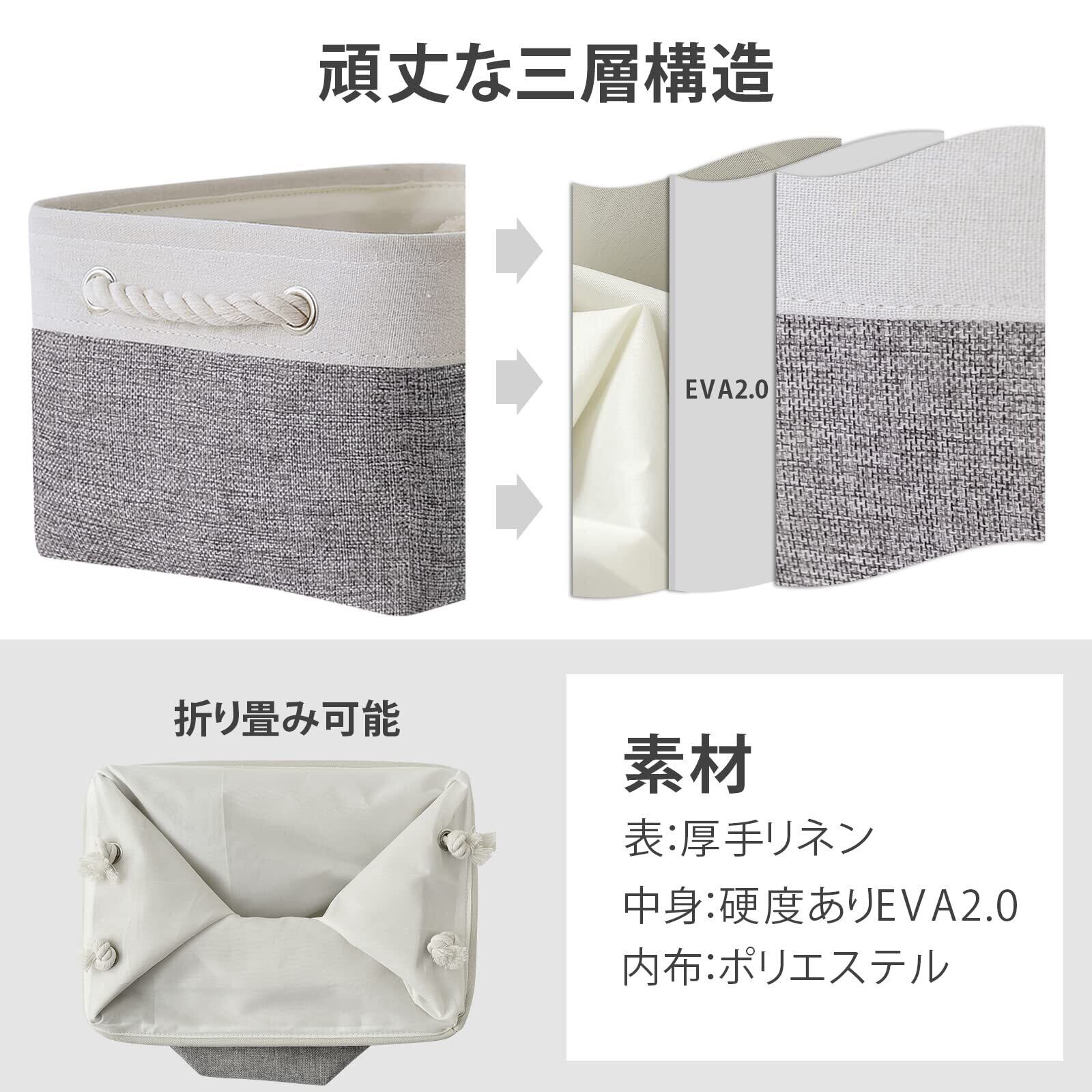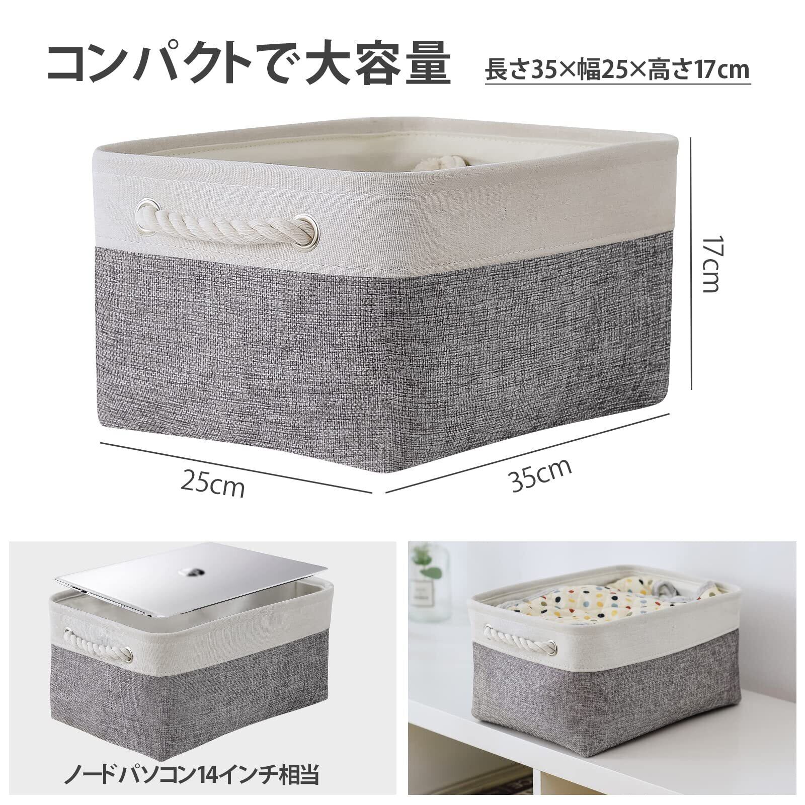TheWarmHomeかご バスケット 収納 かご 35cm×25cm×17cm 収納ボックス カゴ 小型ランドリーバスケット 綿麻製 布製 おもちゃ収納 衣類収納 折り畳む式整理用バスケット おしゃれなインテリア雑貨 高耐久性 ハンドル付き ホワイトグレー