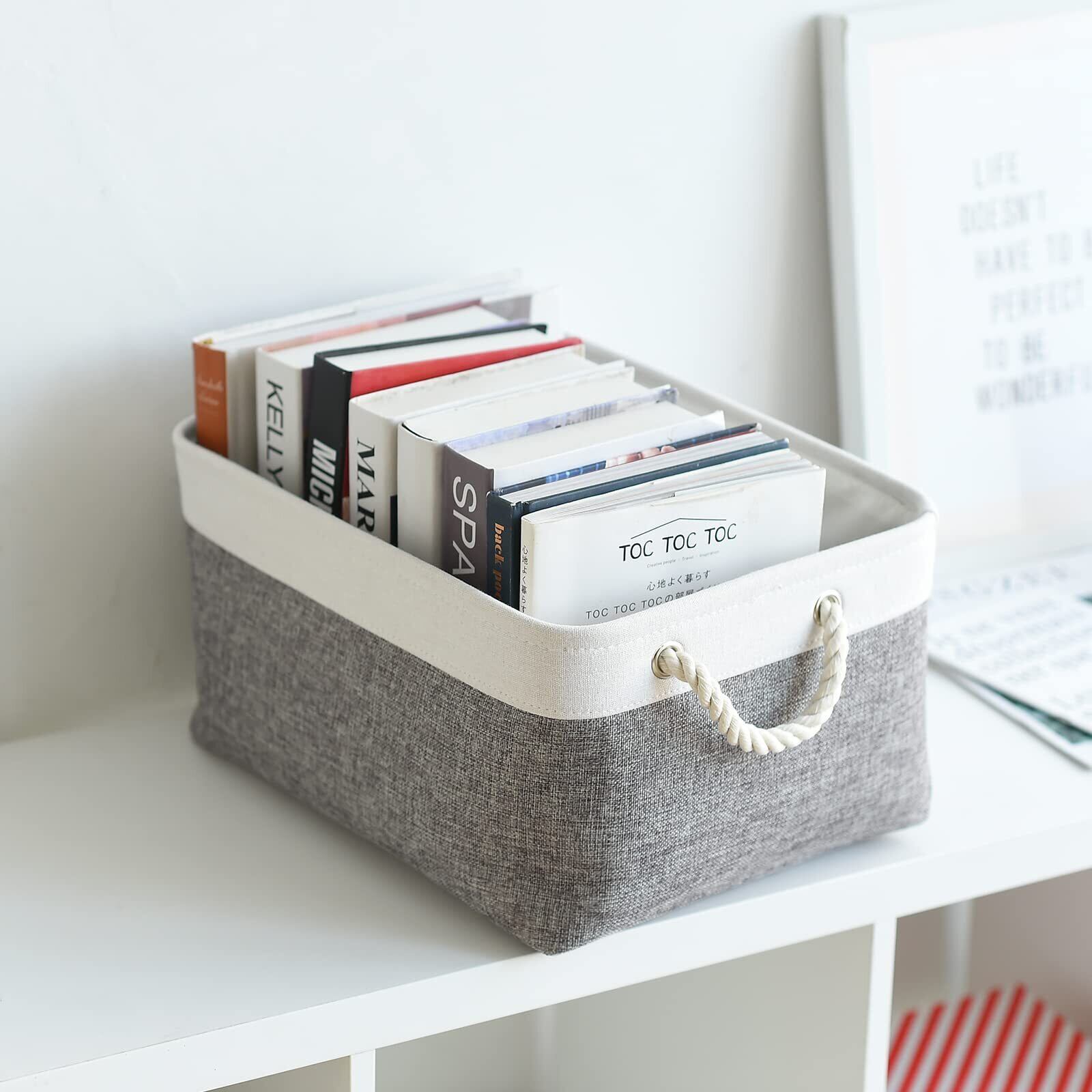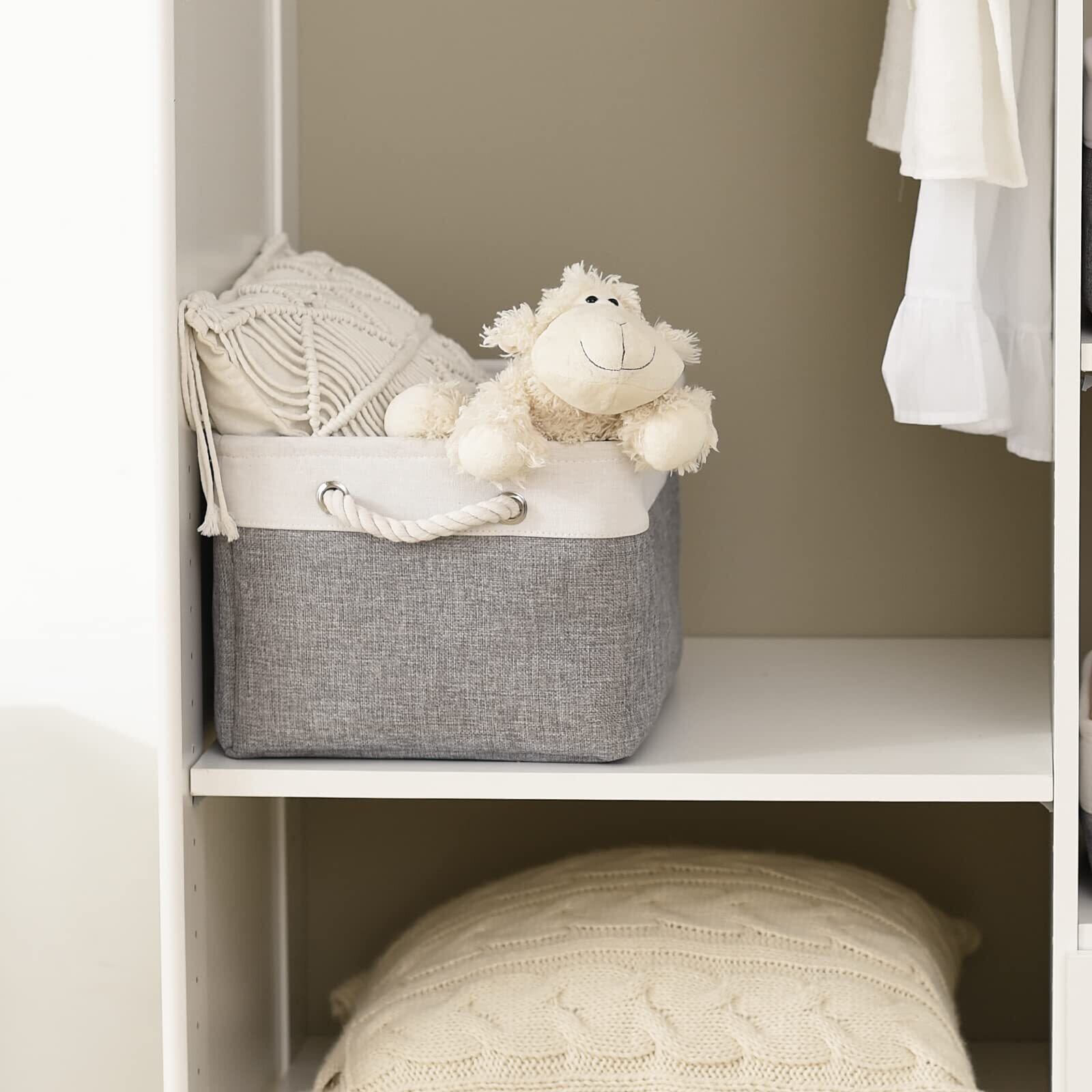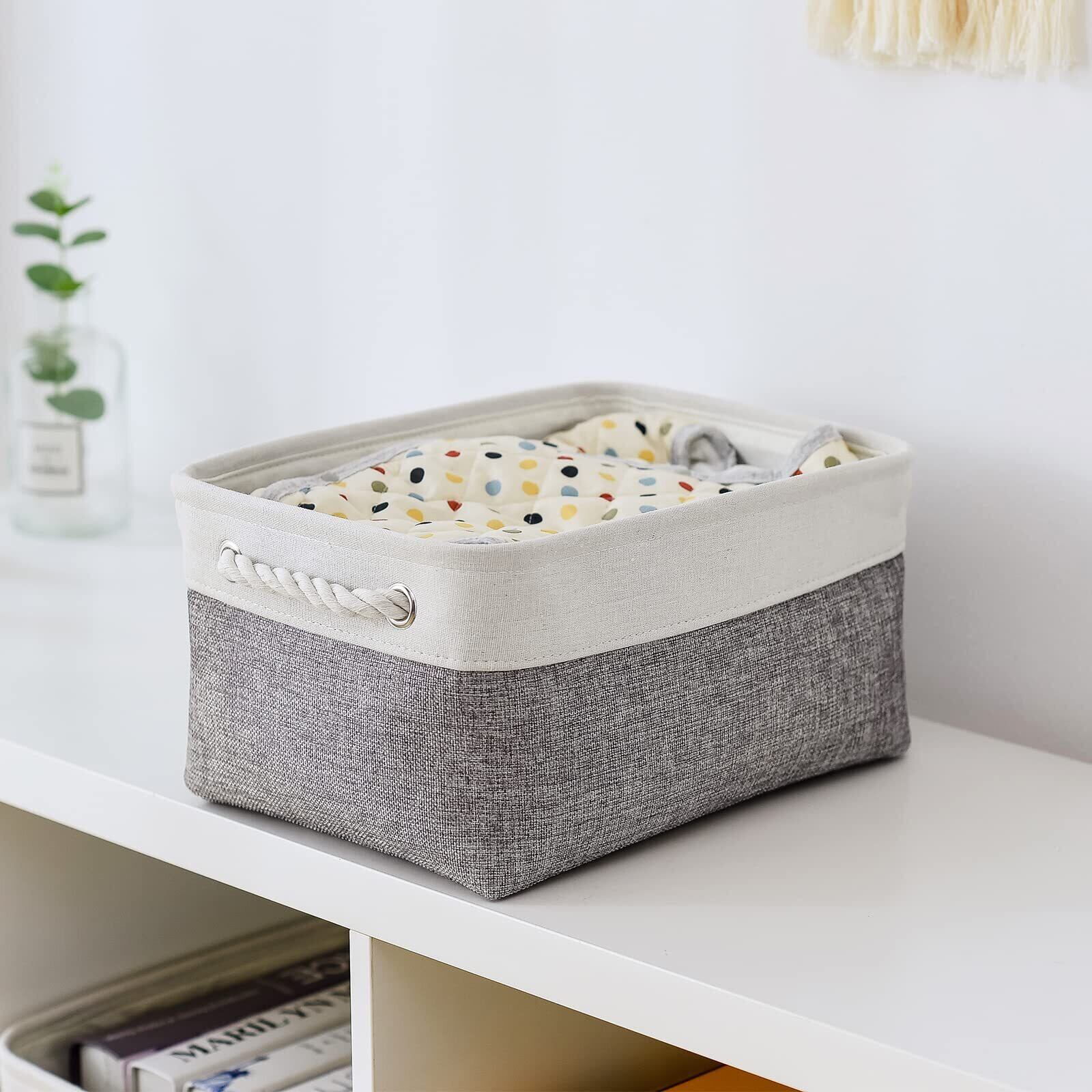 TheWarmHomeかご バスケット 収納 かご 35cm×25cm×17cm 収納ボックス カゴ 小型ランドリーバスケット 綿麻製 布製 おもちゃ収納 衣類収納 折り畳む式整理用バスケット おしゃれなインテリア雑貨 高耐久性 ハンドル付き ホワイトグレー