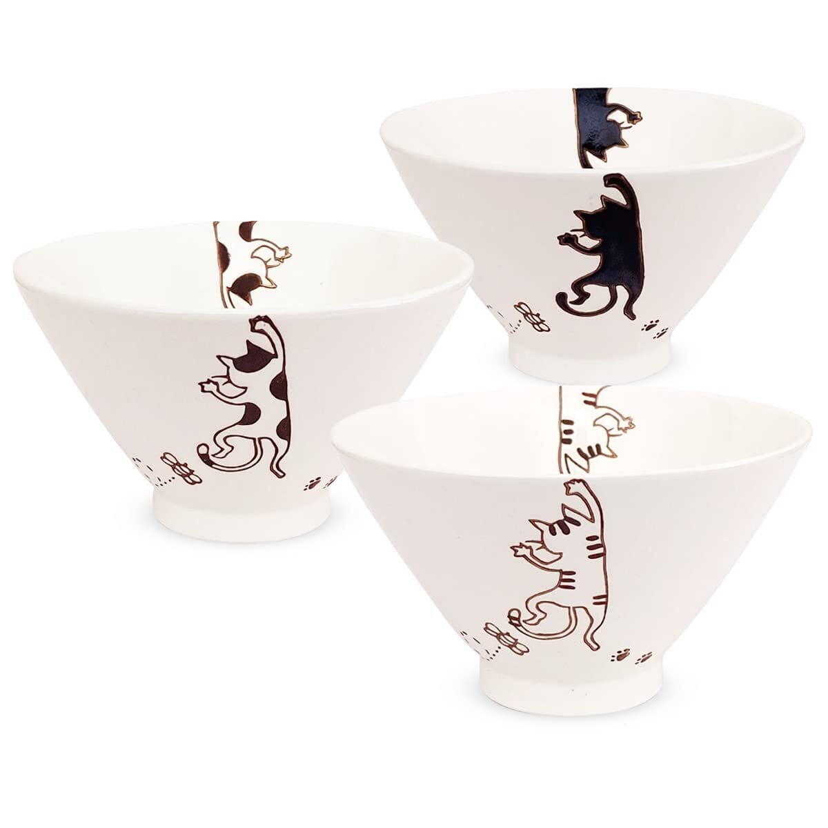 【特価セール】ジェイキッチンズ(J-kitchens) ジェイキッチンズ J-kitchens 工房祥 sho~ こ ねこ 反 茶碗 3個セット(ミケ トラ クロ) 波佐見焼 日本製 | paghag