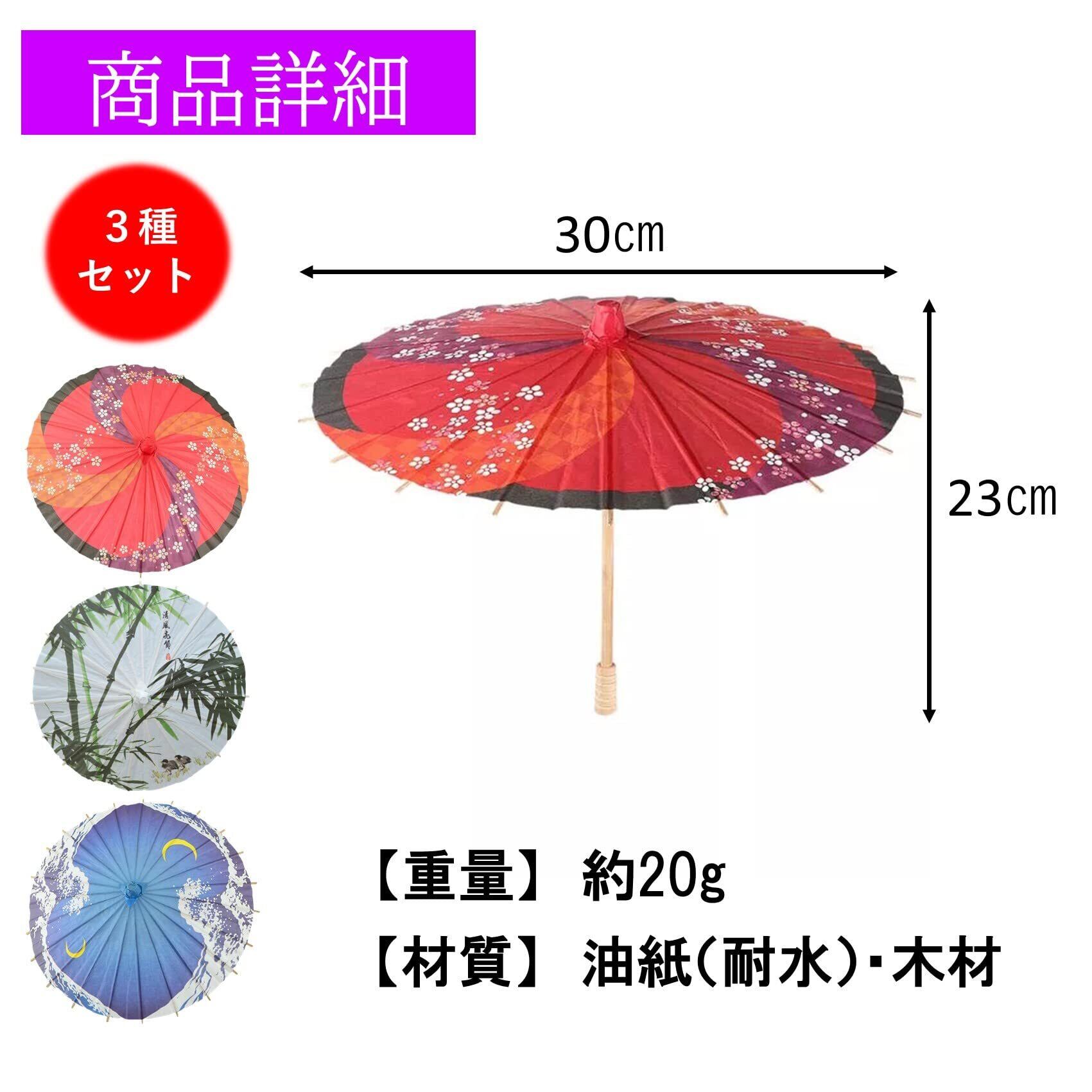 ミニ和傘 ミニ紙傘 飾り 和傘 紙傘 ミニ 置物 インテリア 雑貨 装飾 撮影備品 直径30㎝ 3種セット
