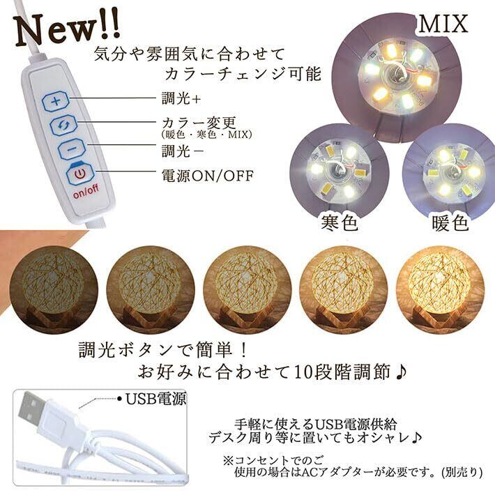 灯すだけ・光溢れる幻想的な空間を演出、球型のカバーと木製の台がシックなルームライト。 ベットルームや居間にあかりを灯すだけで癒しの空間を演出してくれます。 ※スイッチ部分の仕様が変更になりました!<br><br>・旧仕様(順次New仕様となります。在庫が混在する場合がございます。ご了承下さい。)<br>調光機能付き・お好みの明るさに調節できる無段階調節<br>点灯後、電源ボタンを長押しして頂き、調節してご使用ください。 フットライト・常夜灯としてもお使い頂けます。 高さもなく、LED光源、籐クラフト素材なので軽量 割れる心配もなく、安心してお使い頂けます! ※防水仕様ではございませんので、水濡れにはご注意下さい。